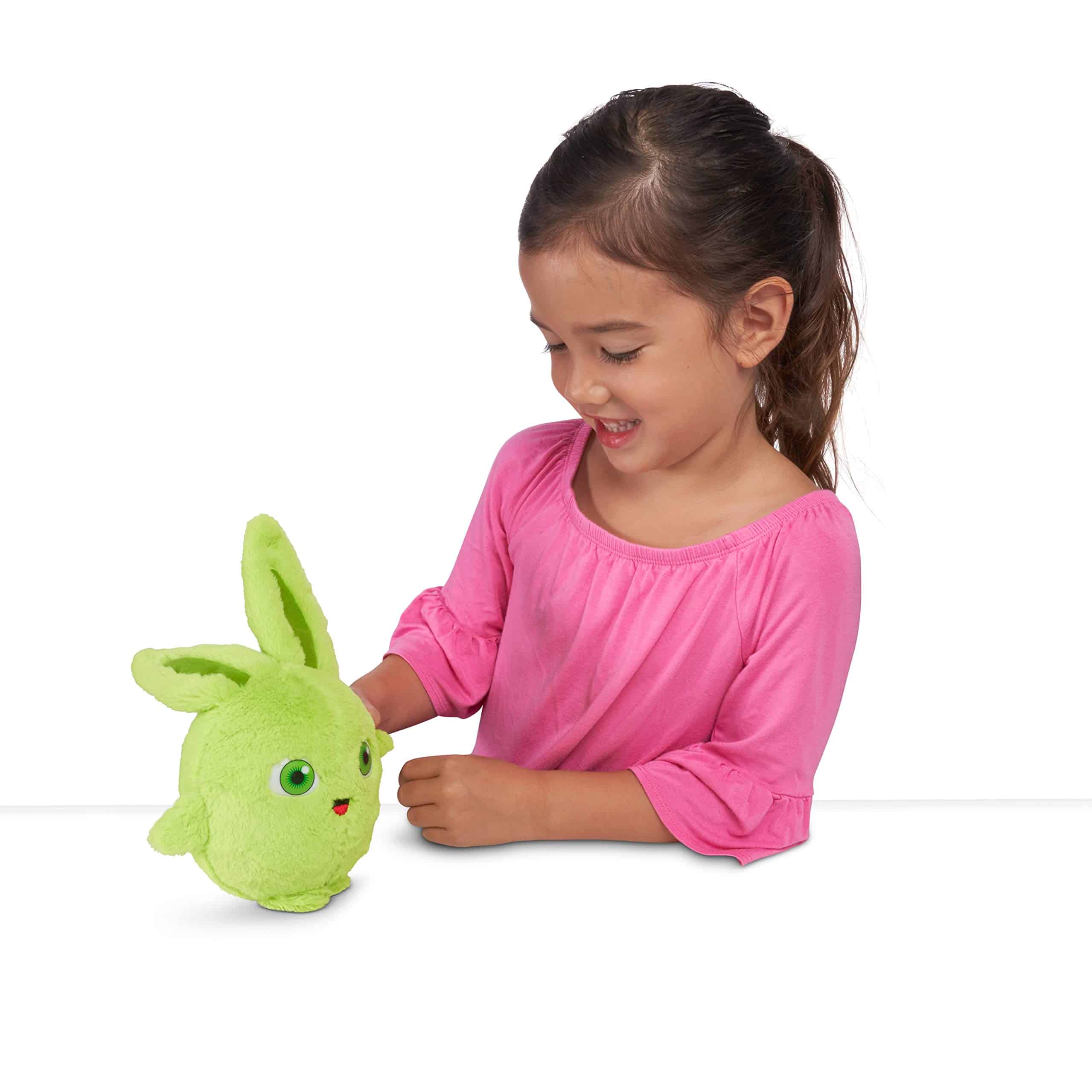 ¡Los divertidos Sunny Bunnies ahora están disponibles como personajes de peluche parlantes! Este increíble paquete de 2 incluye los personajes Hopper y Shiny. Presiona las barriguitas de los conejitos para escucharlos hacer sonidos únicos y divertidos. ¡Estos charlatanes están listos para la diversión y la emoción! ¡Colecciónalos todos para tener la mayor fiesta de parlanchines de conejitos! Apropiado para edades de 3 años en adelante. Pilas incluidas.