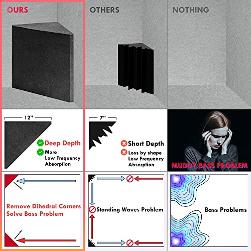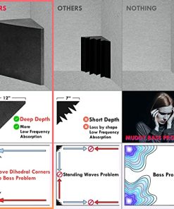 1. Trampa de Bajos de Super Chunk – El diseño perfecto para el problema de Frecuencias Bajas de Esquina Dihedral Edge. 2. Tamaño Grande de 16.5″x15.8″x12″ – Reduce efectivamente longitudes de onda de baja frecuencia con un Tamaño Grande y 12″ de Profundidad. 3. Hazlo Tú Mismo Tu Estudio en Casa – Instala paneles de espuma aislante de sonido para convertir tu habitación en un Estudio de Calidad Profesional. 4. Espuma de Poliuretano de Alta Calidad – Absorción de sonido excelente debido al tamaño de celda grande de la Espuma. 5. Estándares de Control de Calidad Estrictos – Los problemas de calidad del producto son muy importantes para nosotros. Cumplimos con estándares estrictos de control de calidad y producimos espuma de sonido utilizando alta calidad