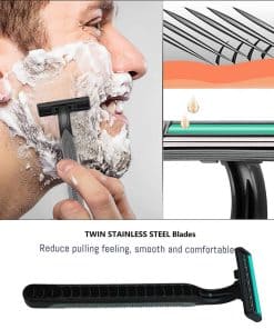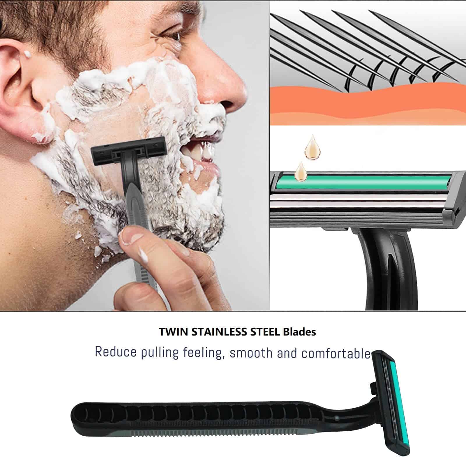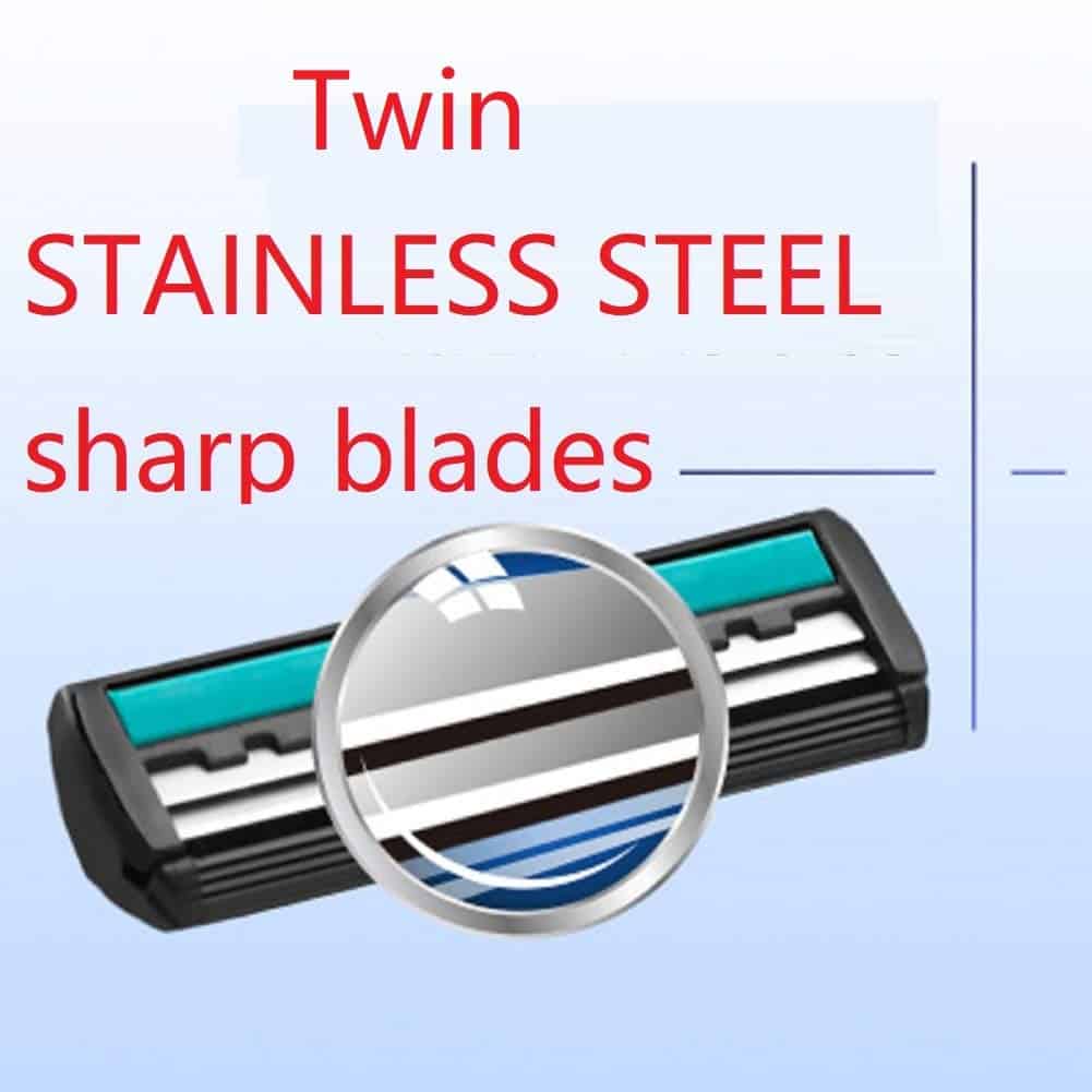 2. HOJAS DE ACERO INOXIDABLE DOBLE: estas rasuradoras desechables para hombres están hechas de acero inoxidable puro, muy afiladas.