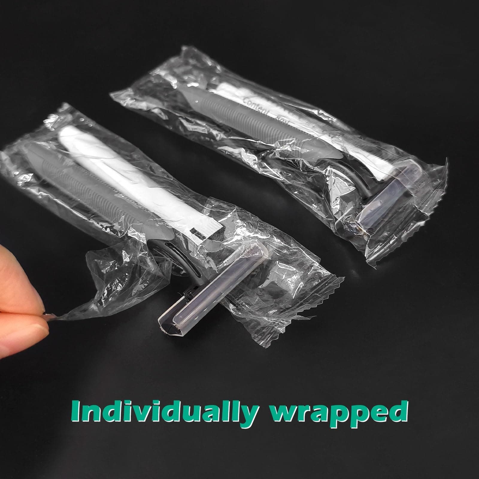 1. EMPAQUETADAS INDIVIDUALMENTE: la bolsa proporciona a tu paciente, huésped o destinatario la confianza de que esta rasuradora desechable para hombres es completamente nueva y nunca ha sido manipulada. EMPAQUETADAS INDIVIDUALMENTE.