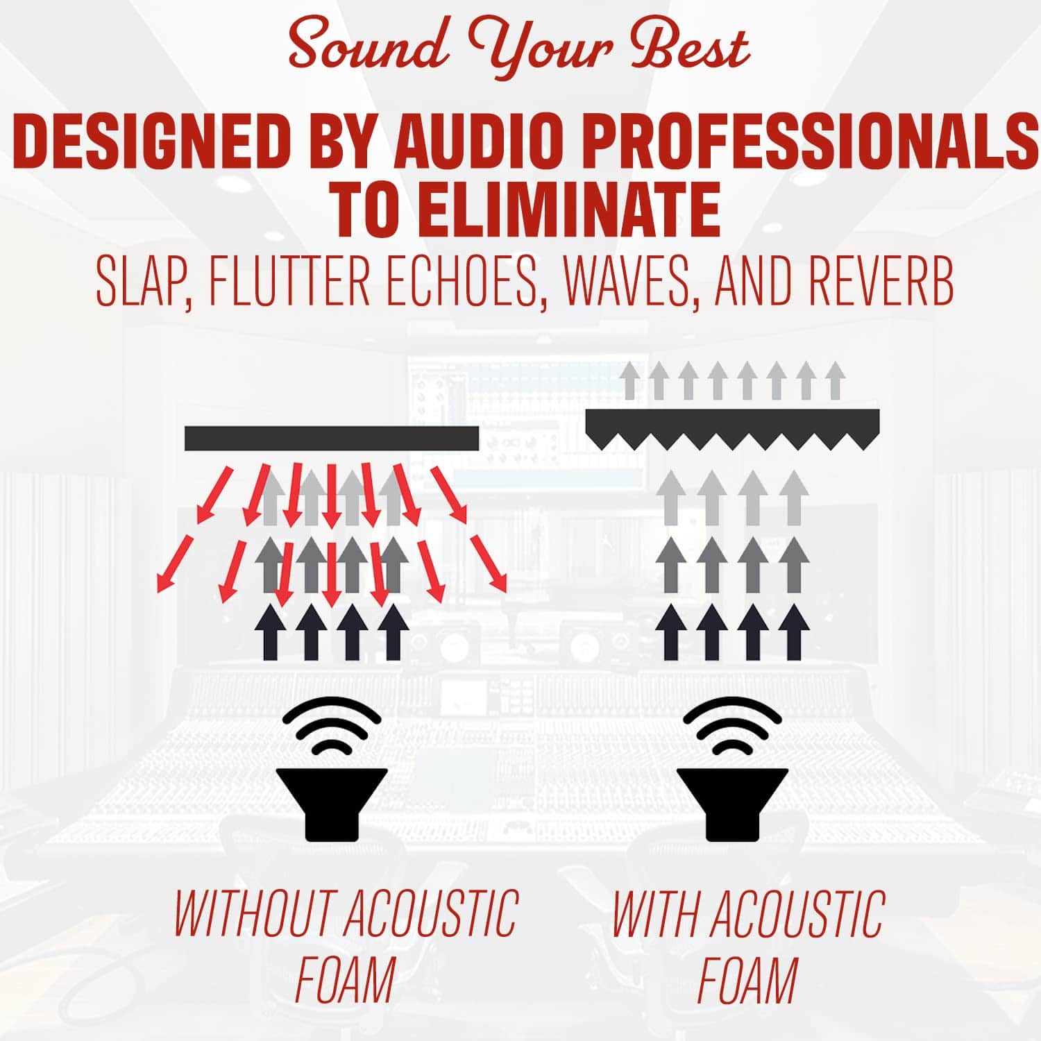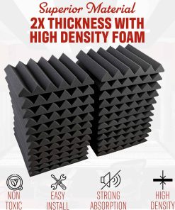 Alta Calidad Paneles de cuña de espuma acústica A2S para insonorizar una habitación. Los paneles están cortados con precisión y conservan exactamente la misma forma. Están perfectamente alineados entre sí para proporcionar aislamiento profesional. Ideal si deseas insonorizar Estudios de Grabación, Cabinas Vocales, Teatros de Entretenimiento en el Hogar, Estudios de Ensayo, Salas de Control, Salas de Conciertos, Podcasting, Iglesias, Oficinas, Cuevas de Hombres, Perreras, Cabinas de Generadores, Cines, Salas de Estar, Dormitorios y más. Los azulejos de espuma de 2 pulgadas ofrecen reducción de ruido del 80-90% mientras eliminan los ecos y la reverberación en las habitaciones. También puedes usarlos para crear tu propia pantalla de batería. Asegúrate de cuidarlos aspirando el polvo ocasionalmente. NOTIFICACIÓN IMPORTANTE: El producto viene comprimido para reducir el costo de envío y el costo total. En esa etapa, el ancho por panel es de aproximadamente 1 pulgada. Métodos de Recuperación: 1. Abrir el paquete y dejarlos completamente DESCOMPRIMIDOS durante al menos 72 HORAS a temperatura ambiente. 2. Abrir el paquete al vacío, poner los paneles de espuma en un lugar ventilado durante aproximadamente 24-48 horas. 3. Sumerge la espuma en agua tibia durante 2 minutos, estruja el agua, usa aire para secarla, o usa un secador de pelo opcionalmente. Para uso en interiores solamente. ¡Garantía de la Mejor Calidad! Por favor contáctenos si tiene alguna inquietud sobre nuestros productos. Le proporcionaremos un reemplazo o reembolso completo en caso de que no esté satisfecho con su pedido por cualquier motivo.