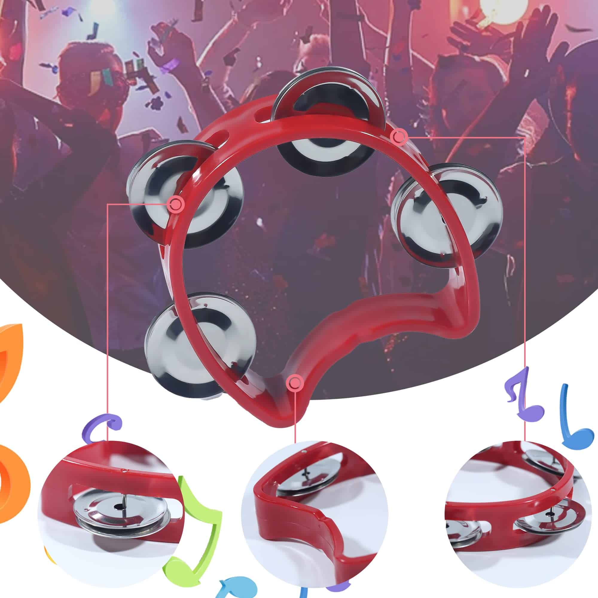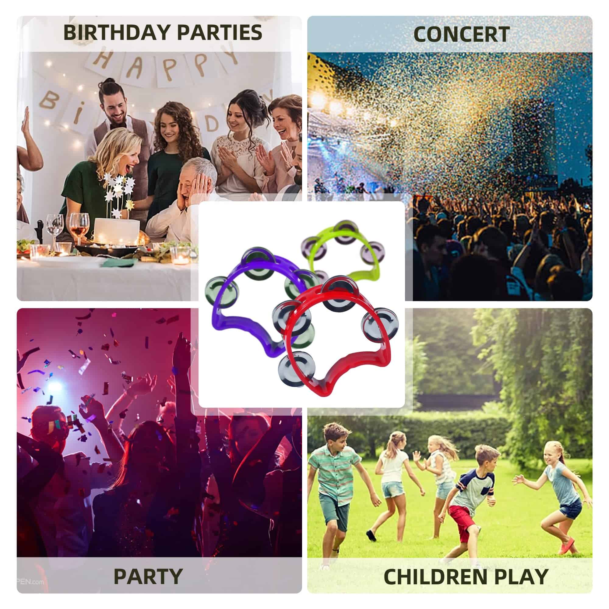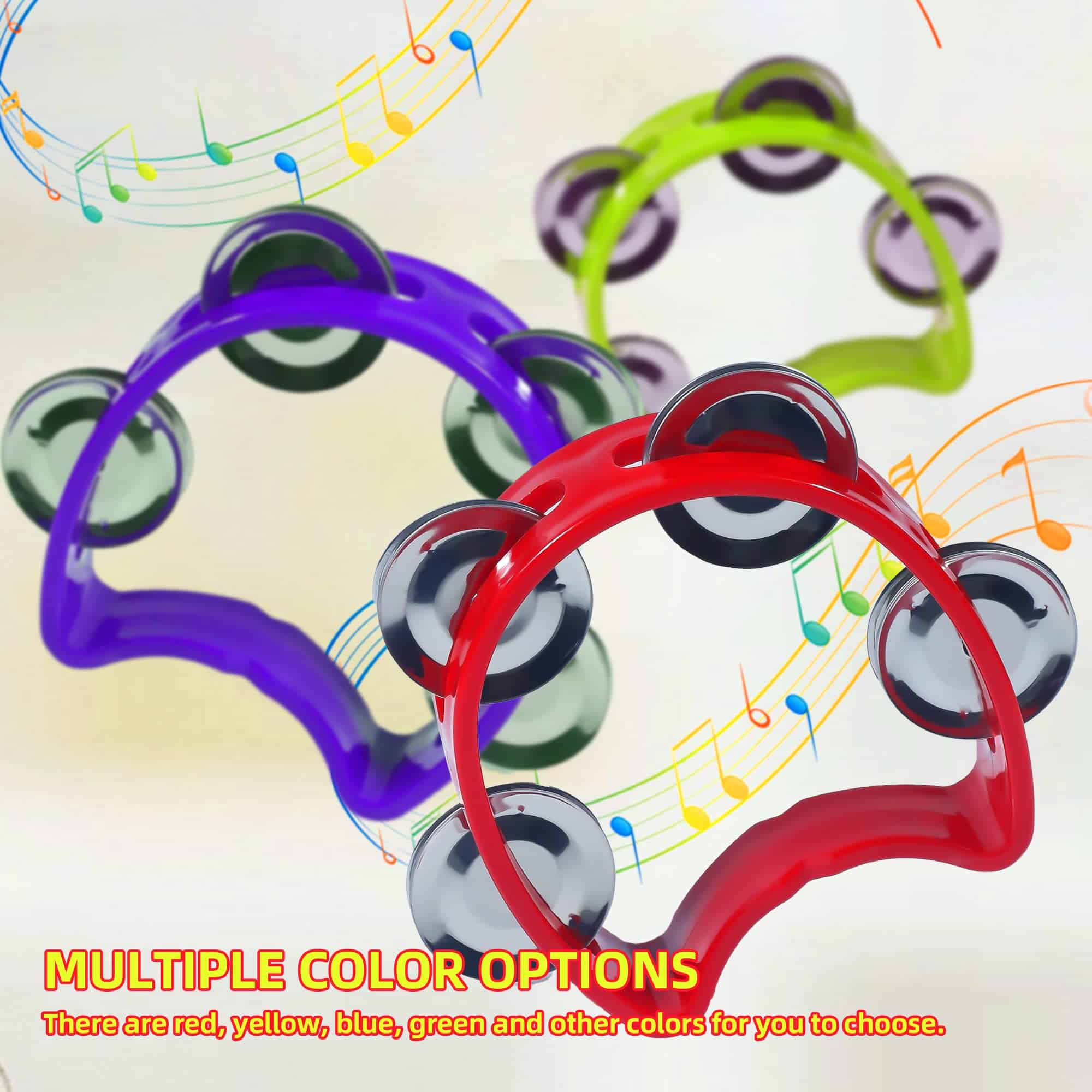 Recibirás cuatro colores diferentes de panderos, incluyendo rojo, amarillo, azul y verde, seis de cada color. Satisface tu uso diario.