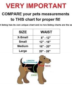 PAD PLACEMENT STRAPS- Nuestros pañales para perros hembra están diseñados con bandas elásticas para ayudar a mantener una almohadilla en su lugar. Funcionales para mascotas jóvenes sin entrenamiento, mascotas que sufren de incontinencia, edad o enfermedad. No ofrecen almohadillas absorbentes. La solución para evitar lavados repetidos es cambiar la almohadilla según sea necesario en lugar de tener que lavar el pañal después de cada uso. Malla en la capa interior para máxima comodidad y capa exterior 100% impermeable para evitar fugas. CALIDAD: Elegimos materiales de grado-A para aumentar la comodidad y aceptación de tu mascota, sin textura «dura» o incómoda. Nuestros pañales están hechos de tela transpirable, suave y 100% IMPERMEABLE y a PRUEBA DE FUGAS. AJUSTABLE: ¡Por favor, mida a su mascota y compare con la tabla proporcionada! Nuestros pañales para perros vienen en una variedad de tamaños diferentes para mascotas pequeñas, medianas y grandes. La banda de cintura ajustable se asegura con Hook and Loop para ajustar el tamaño perfecto para tu mascota. El sistema de Hook and Loop es rápido y fácil de asegurar, duradero y adherente para mantener el pañal de tu mascota en su lugar. ECONÓMICO: Este pañal es lavable a máquina o a mano, reutilizable y se puede colgar para secar. El pañal no necesita ser lavado después de cada uso, solo cambie la almohadilla. Es económico y respetuoso con el medio ambiente a diferencia de un pañal desechable. COLORES DE MODA- Elegimos colores elegantes para tu mascota. Tu mascota llevará el pañal con orgullo y lucirá a la moda. Son excelentes regalos y crean una vida agradable para tu mascota. XS: Cintura 8″ – 12″ / S: Cintura 12″ – 16″ / M: Cintura 16″ – 20″ / L: Cintura 20″ – 26″