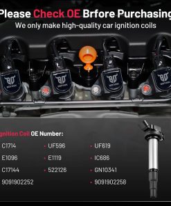 Bobinas de rendimiento estándar OE con certificación TS16949. Hechas de materiales de alta calidad como PBT importado de Alemania y PPO doméstico de EE.UU. para aumentar la resistencia al calor, resistencia al desgaste y resistencia a la corrosión y prolongar la vida de la bobina. Control de calidad estricto y pruebas en condiciones extremas para garantizar que la bobina pueda emitir alta tensión de manera estable. Reduzca los problemas comunes de fallo en la bobina de encendido, tiempo de arranque largo, mala economía de combustible, potencia insuficiente y vacilación. Compatible con los números de parte C1714, UF619, UF596, 9091902252, 9091902258, E1096, GN10341, C17144, E1119, 522126, IC686. Acerca de BDFHYK Un fabricante profesional de piezas automotrices con líneas de industria maduras. Tenemos nuestra fábrica y un desarrollador experimentado. Llevamos más de 10 años sirviendo a diferentes clientes de diferentes áreas. Hacemos nuestro mejor esfuerzo para escuchar a los clientes y actualizar nuestros productos. Si tiene más problemas, no dude en contactarnos. Elija BDFHYK; elija un buen servicio.