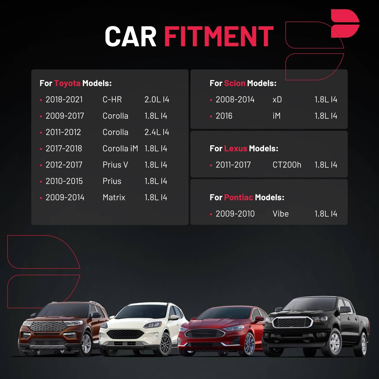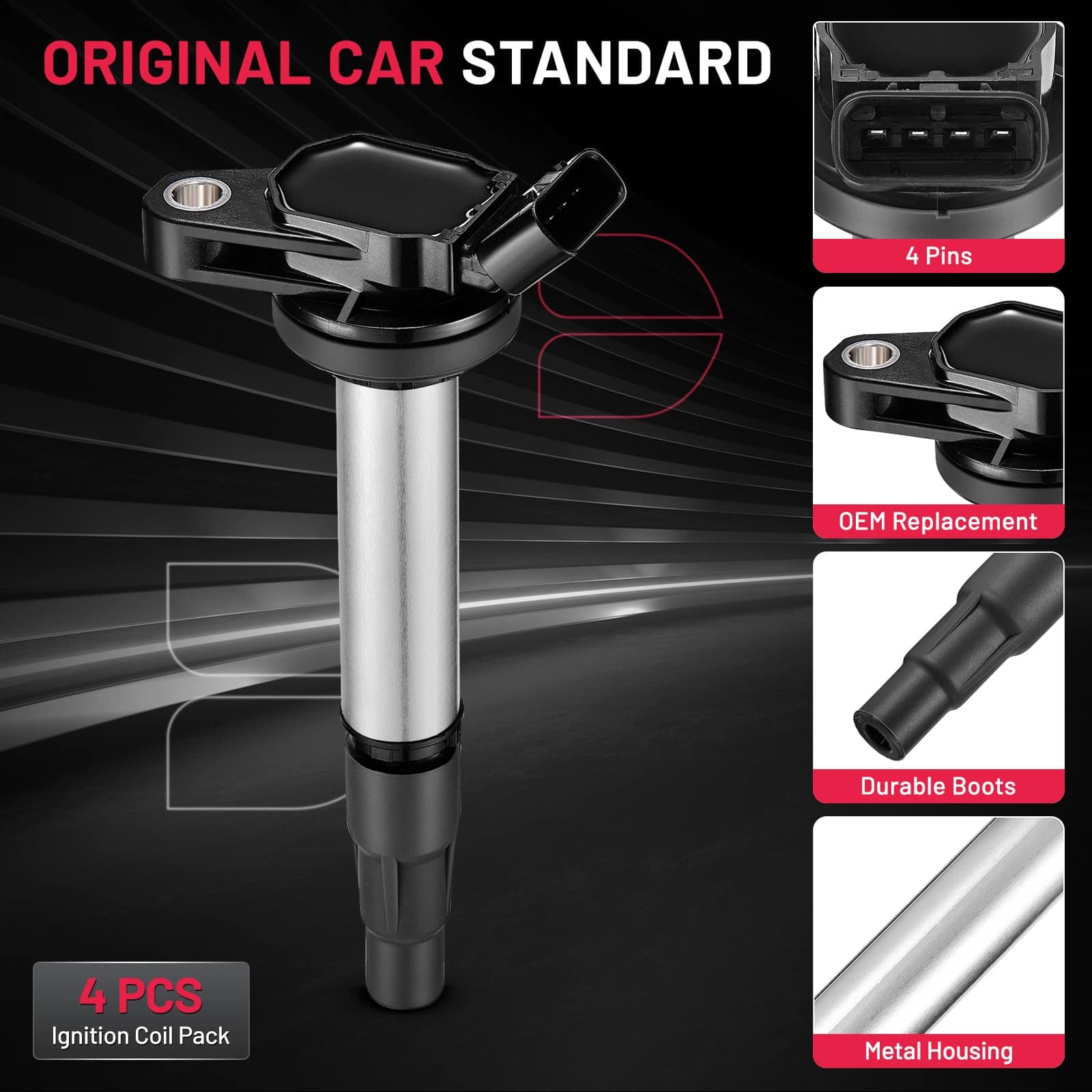 Paquete de 4 Bobinas de Encendido BDFHYK para Toyota