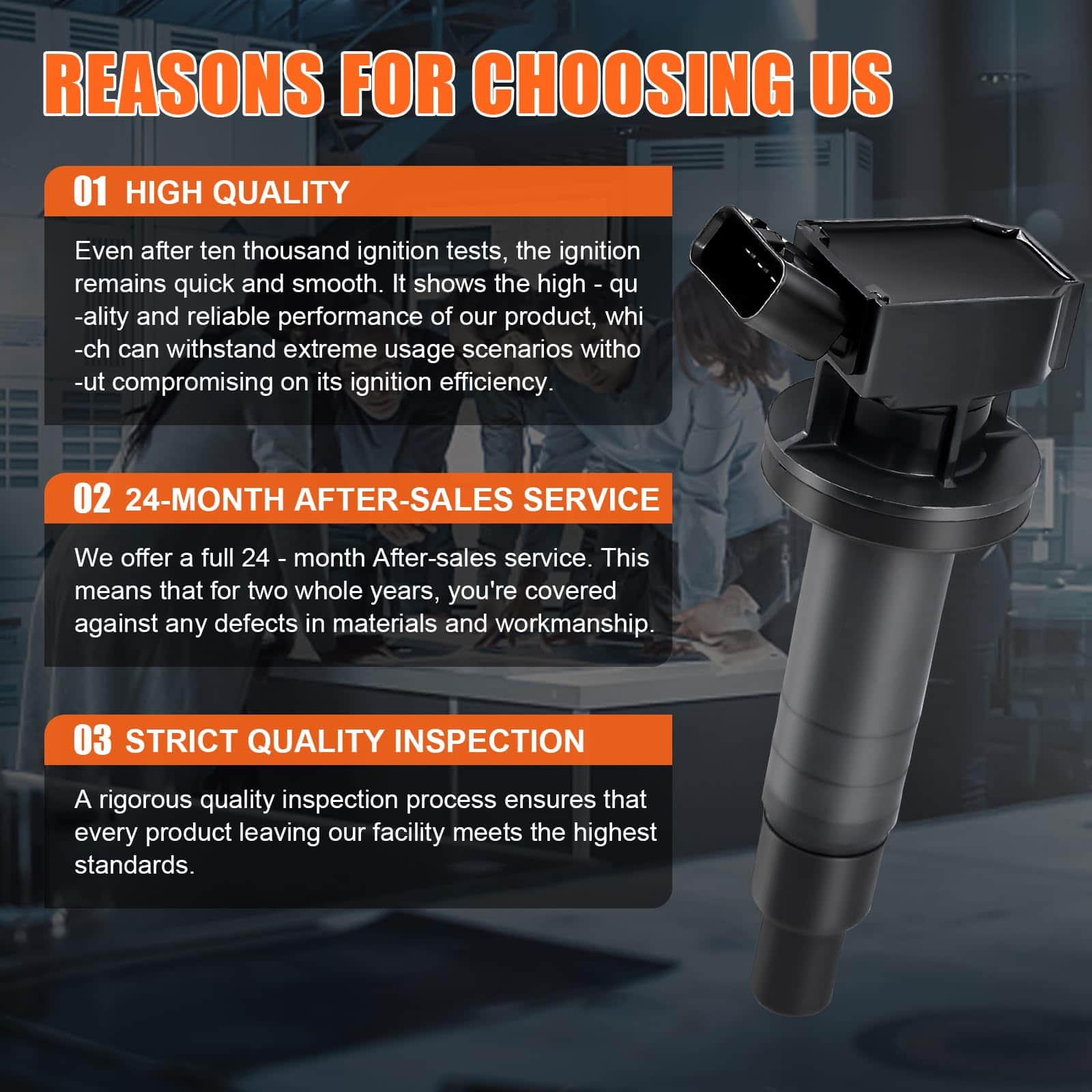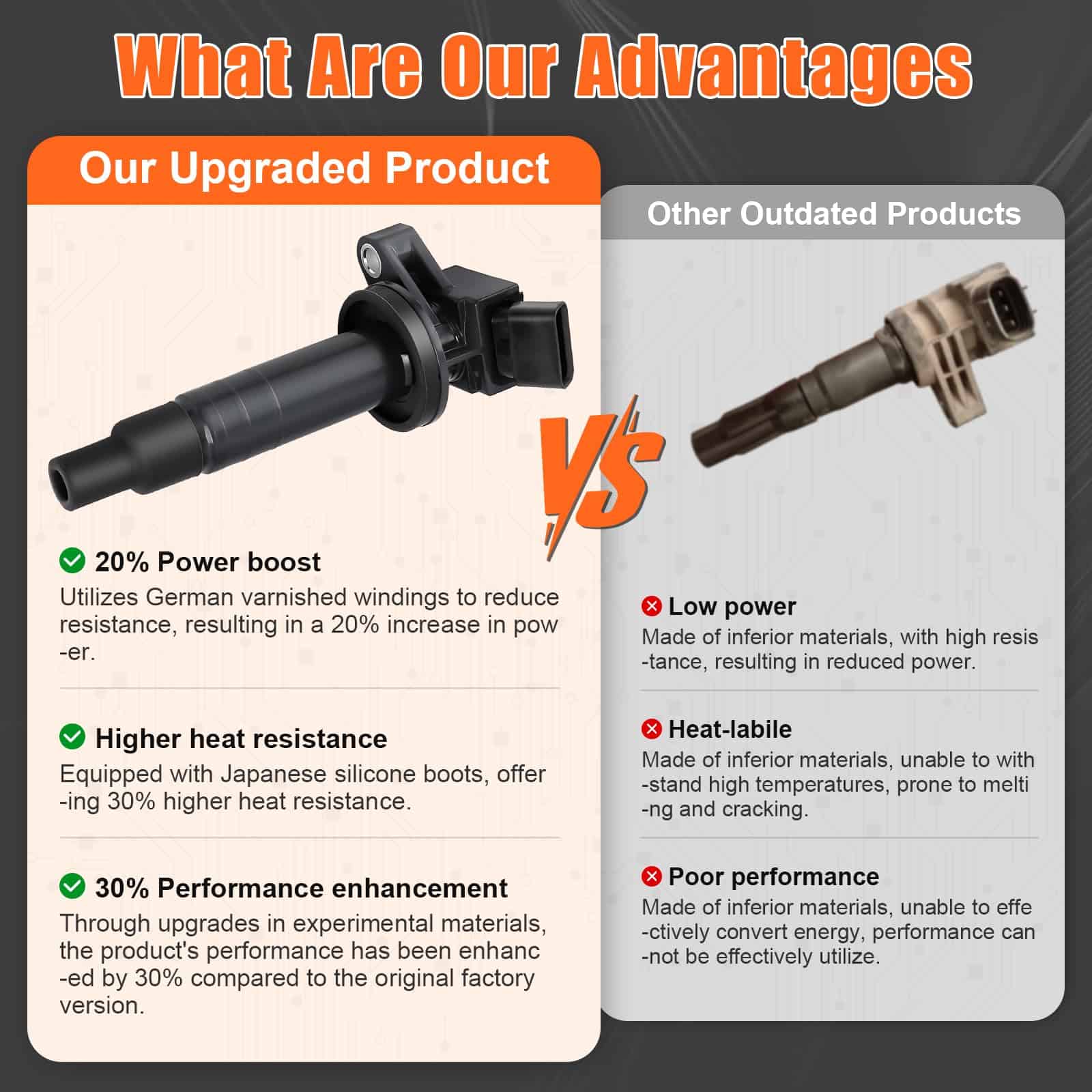 Bobinas de encendido de alta calidad diseñadas para mejorar el rendimiento de su vehículo. Las bobinas cuentan con tecnología de ingeniería de alto rendimiento que incluye devanados barnizados alemanes para reducir la resistencia, botas de silicona japonesas con resistencia al calor un 30% mayor, y electrodos de iridio de 0.6mm que duran 5 veces más que las aleaciones de níquel. Las bobinas están probadas en laboratorio para proporcionar una chispa un 45% más rápida y una eficiencia de combustible un 18% mejor. Además, ofrecen una solución completa para problemas comunes como ralentí áspero, luz de revisión del motor, aceleración deficiente y desperdicio de combustible. Con una durabilidad de grado militar, incluyendo encapsulación de epoxy con clasificación IP67 resistente al agua, núcleo de acero de silicio que ofrece un 40% más de resistencia a la vibración, y carcasa de aleación de cobre-níquel que proporciona una eficiencia de disipación de calor un 35% mejor que las bobinas originales de fábrica. Disfrute de una garantía de 24 meses, devolución sin complicaciones de 30 días y soporte técnico durante todo el año. Nuestro equipo de soporte dedicado está disponible para ayudarlo en cualquier momento.