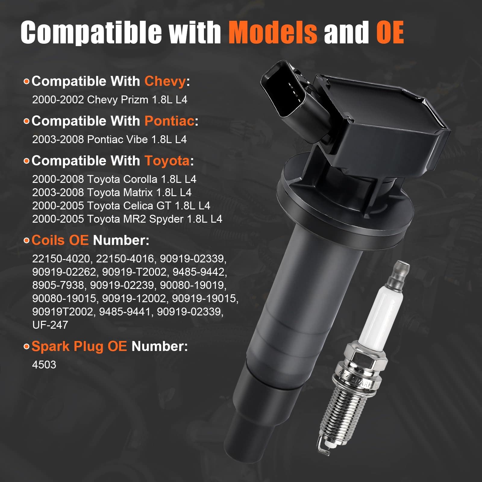 Paquete de 4 Bobinas de Encendido & Bujía para Toyota