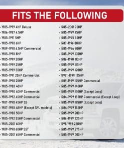 Este juego de bobinas de encendido de repuesto es compatible con motores Johnson y Evinrude de 2-8 cilindros carburados de 2 tiempos. Reemplace las bobinas si no entregan el voltaje necesario a las bujías. Este repuesto es un ajuste OEM directo y está diseñado para resistir altas temperaturas y entornos marinos adversos. Viene con una garantía de 2 años o 24,000 millas. Más detalles en nuestro sitio web.
