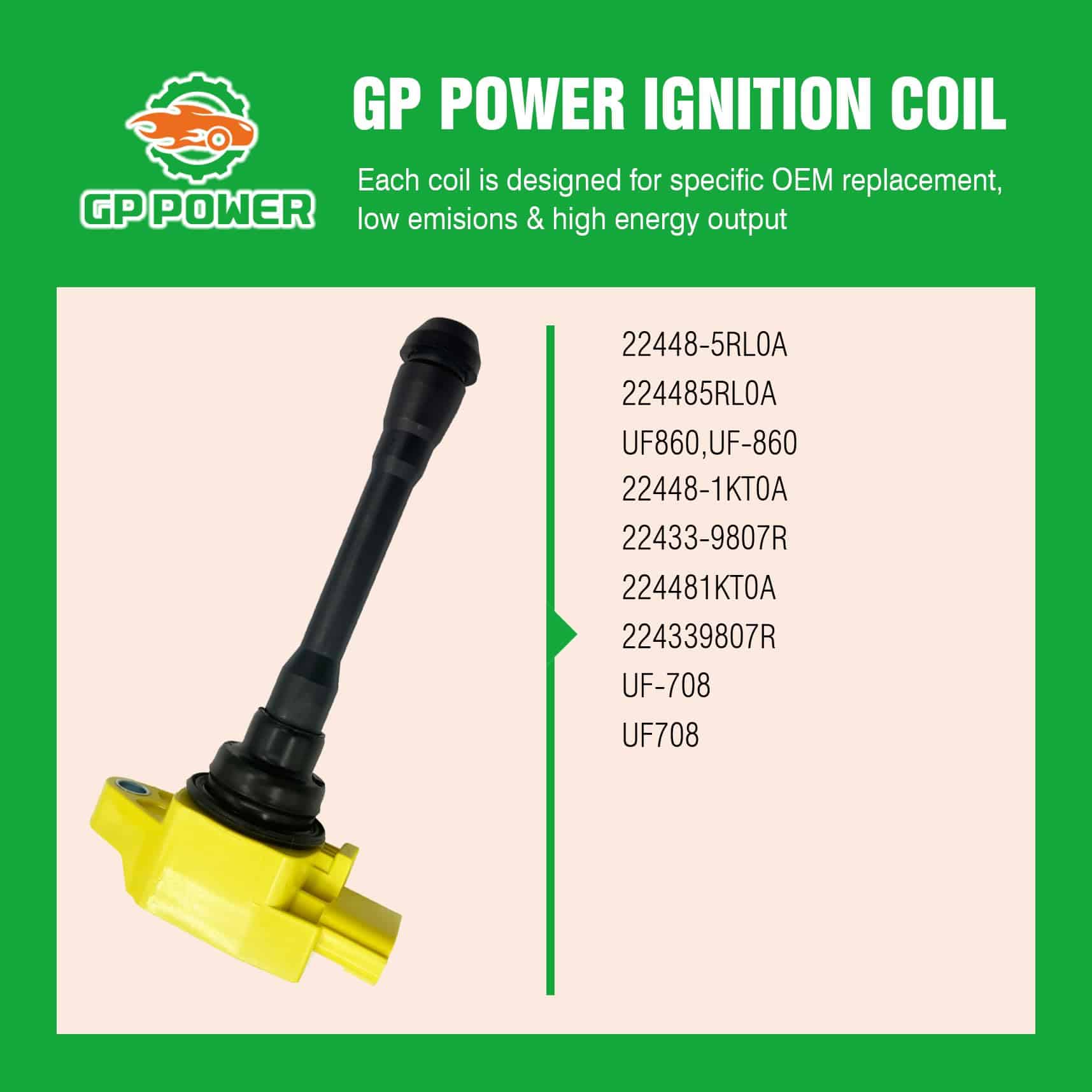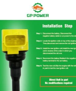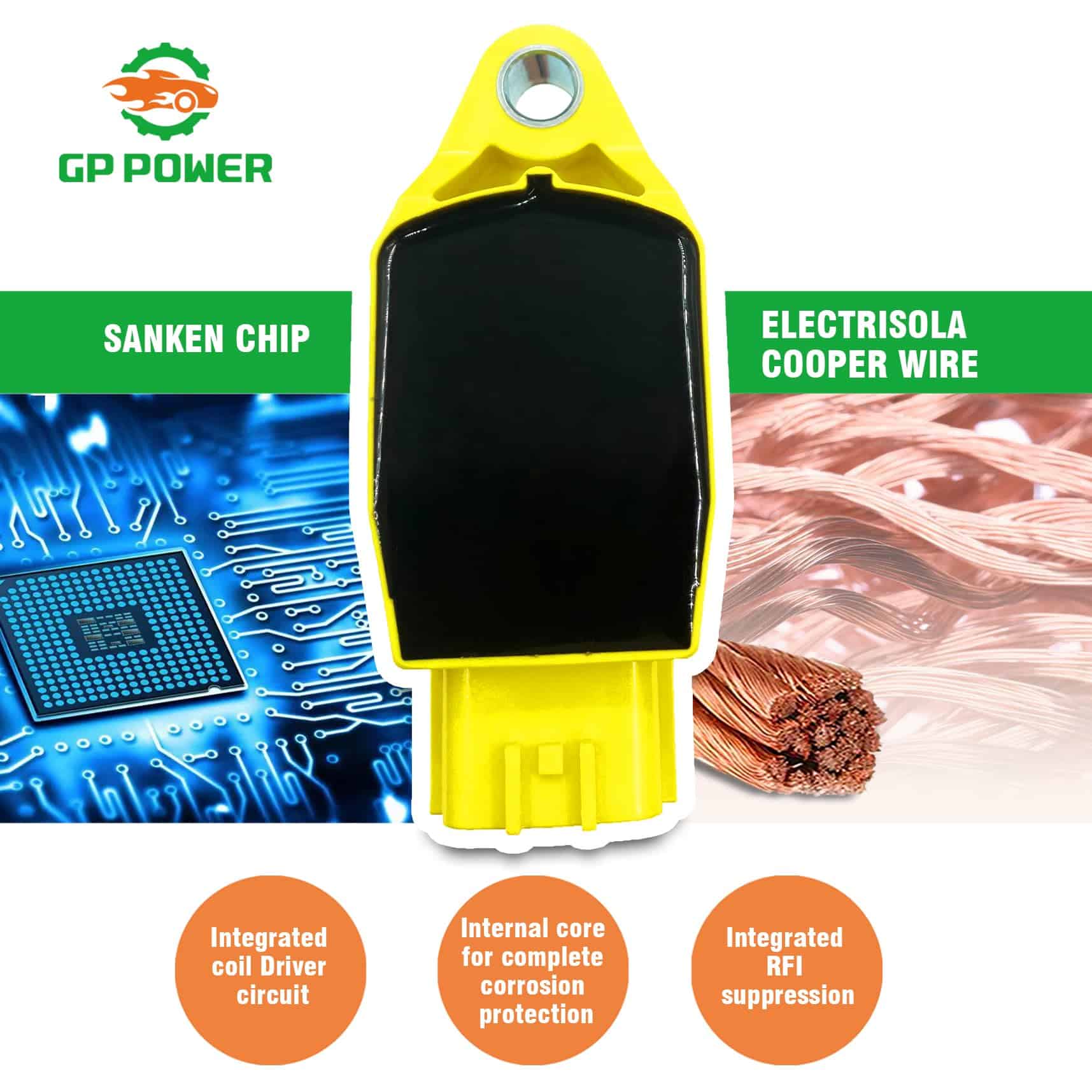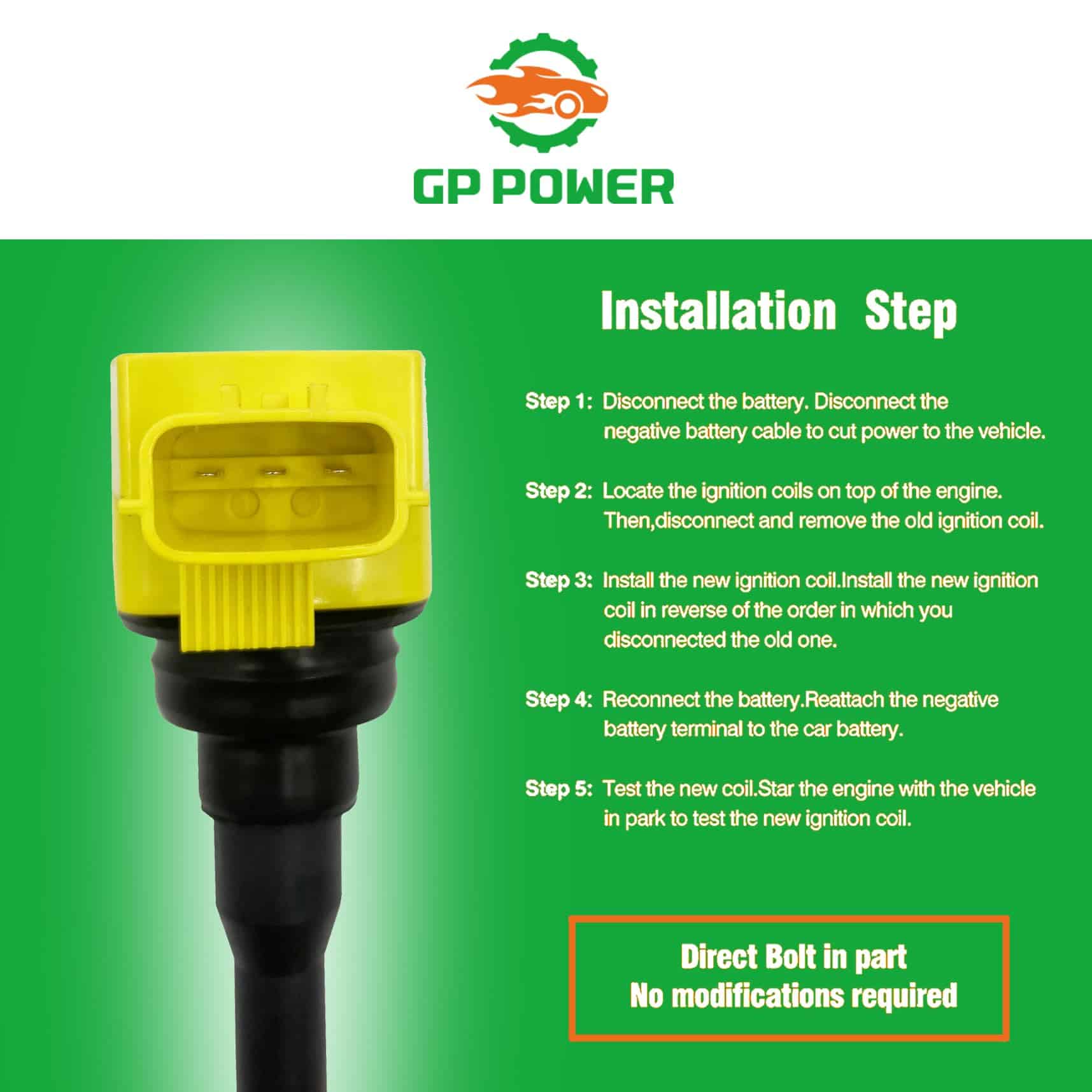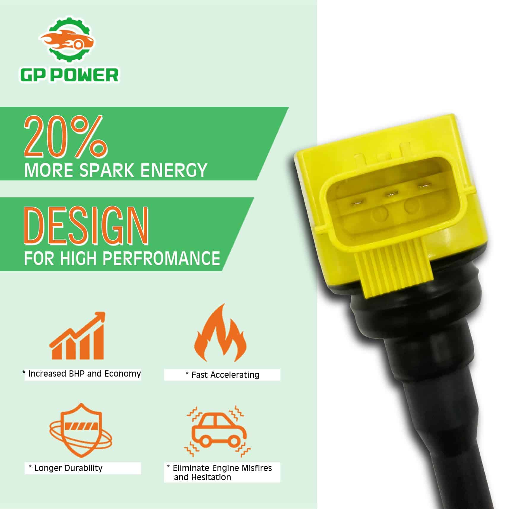 1. Las bobinas de encendido GP POWER siempre están hechas con cobre de alta calidad, diseñadas para una aplicación específica y probadas en carretera. Por favor revise la información a continuación cuidadosamente para asegurarse de que esta pieza sea compatible con su vehículo. 2. GP POWER utiliza la última tecnología y componentes OE para ofrecer una calidad excepcional que supera los requisitos OE. Nuestros paquetes de bobinas de encendido pueden instalarse fácilmente en ambos lados del motor dentro del compartimiento del motor, que se pueden instalar en minutos. Puede experimentar arranques de motor más consistentes y suaves de inmediato. 3. Excelente confiabilidad y rendimiento, reemplazo directo atornillado en la ubicación de fábrica, reemplaza el número de pieza de equipo original. 4. Reduce problemas comunes de bobinas de encendido como; arranque nulo/difícil, tiempo de arranque largo, fallos de encendido, falta de potencia, cambios de transmisión inconsistentes, ensuciamiento de bujías, falla prematura del convertidor catalítico, mala economía de combustible, iluminación del motor de verificación de errores. 5. Garantía limitada de 1 año – Por favor use para verificar si esta pieza es compatible con su vehículo