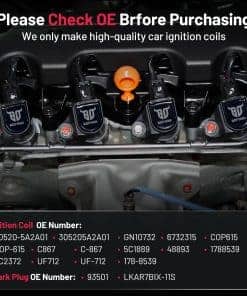1. Información básica: Las bobinas de encendido UF712 y las bujías 93501 son compatibles con Acura ILX l4 2.4L 2016-2022, Acura TLX l4 2.4L 2015-2020, Honda CR-V l4 2.4L 2015-2019, Honda Accord l4 2.4L 2013-2017. Por favor, consulte la información detallada de compatibilidad en fotos o en la página de detalles. 2. Características de la bobina de encendido: Las bobinas de encendido de alta calidad están hechas de material de acero al silicio, goma importada de Japón y alambre barnizado importado de Alemania, lo que hace que nuestras bobinas tengan una larga vida útil y mejor calidad. Por favor, compruebe OE: 30520-5A2A01 305205A2A01 GN10732 6732315 COP615 COP-615 C867 C-867 5C1889 48893 1788539 5C2372 UF712 UF-712 178-8539. 3. Características de la bujía de encendido: Las bujías de encendido profesionales están fabricadas con materiales de alta tecnología. Elegimos electrodo de iridio y cerámica única para asegurarnos de que su auto pueda tener una nueva vida después de ser instalado. El auto arrancará rápidamente y acelerará en poco tiempo tan potente como un auto nuevo. Por favor, consulte OE: 93501 LKAR7BIX-11S. 4. ¡Sí, necesita una nueva bobina y bujía! Si su auto ha sido usado por mucho tiempo (más de 80000 km) y tiene problemas como vibraciones en el auto, fallos al arrancar, aceleración lenta y aumento del consumo de combustible, es posible que necesite cambiar un nuevo juego de bujías y bobinas. Las bobinas de encendido y las bujías de BDFHYK pueden ofrecerle una experiencia de usuario profesional y hacer que su auto se sienta como nuevo. Puede elegirlo con confianza. 5. Sobre BDFHYK Un fabricante de piezas de auto profesional con líneas de producción maduras. Tenemos nuestra fábrica y desarrollador experimentado. Llevamos más de 10 años atendiendo a diferentes clientes de diferentes áreas. Hacemos todo lo posible para escuchar a los clientes y actualizar nuestras bobinas y bujías. Si tiene más problemas, no dude en contactarnos. Elija BDFHYK, elija un buen servicio.