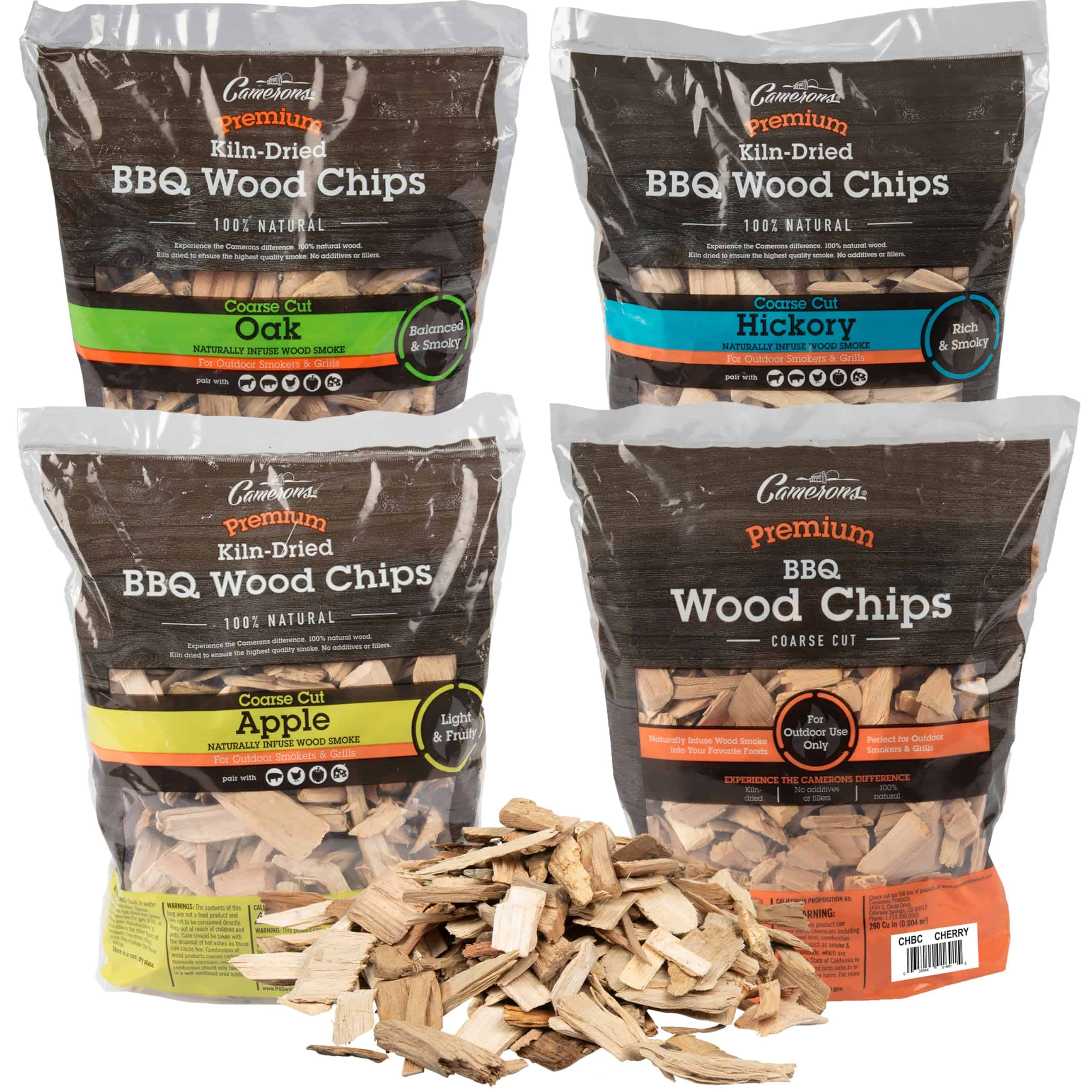 4. Las astillas de Manzana, Hickory, Roble y Aliso combinan bien con aves de corral, carne de vacuno, cerdo y mariscos! La Manzana es una madera suave de fruta, el Hickory es una madera dura clásica y sabrosa, el Roble proporciona un humo medio y el Aliso es ligero y delicado.