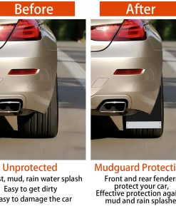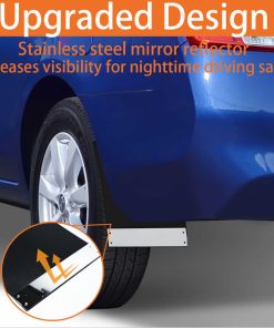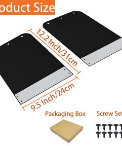 Paquete de 4 guardabarros universales negros con reflectores nocturnos, mudflaps y accesorios de tornillos para protección delantera y trasera. Los guardabarros protegen eficazmente el cuerpo del auto del polvo, evitan que el barro y el agua salpiquen y previenen que la arena y las piedras atrapadas en las costuras internas de los neumáticos salten y rayen el auto. Mantén tu auto ordenado y reduce los daños con estos mudflaps negros de alta calidad. Los guardabarros no vienen preperforados, por lo que necesitarán ser perforados según el vehículo para una protección óptima. El paquete incluye tornillos para mayor comodidad. Fabricados en EVA de alta resistencia y durabilidad, estos guardabarros son antideslizantes, resistentes al desgaste, al frío y a la rotura, adaptándose a todo tipo de condiciones climáticas y de carretera. La placa de protección de reflejo de espejo de acero inoxidable en el borde inferior aumenta la visibilidad para una conducción nocturna segura. Con un tamaño de 12.2×9.5 pulgadas/31x24cm, estos guardabarros universales se adaptan a una variedad de camiones, vans y RVs. Antes de comprar, asegúrate de que tu auto tenga espacio para los tornillos de montaje. Ofrecemos un servicio completo para resolver todas tus dudas en menos de 24 horas.