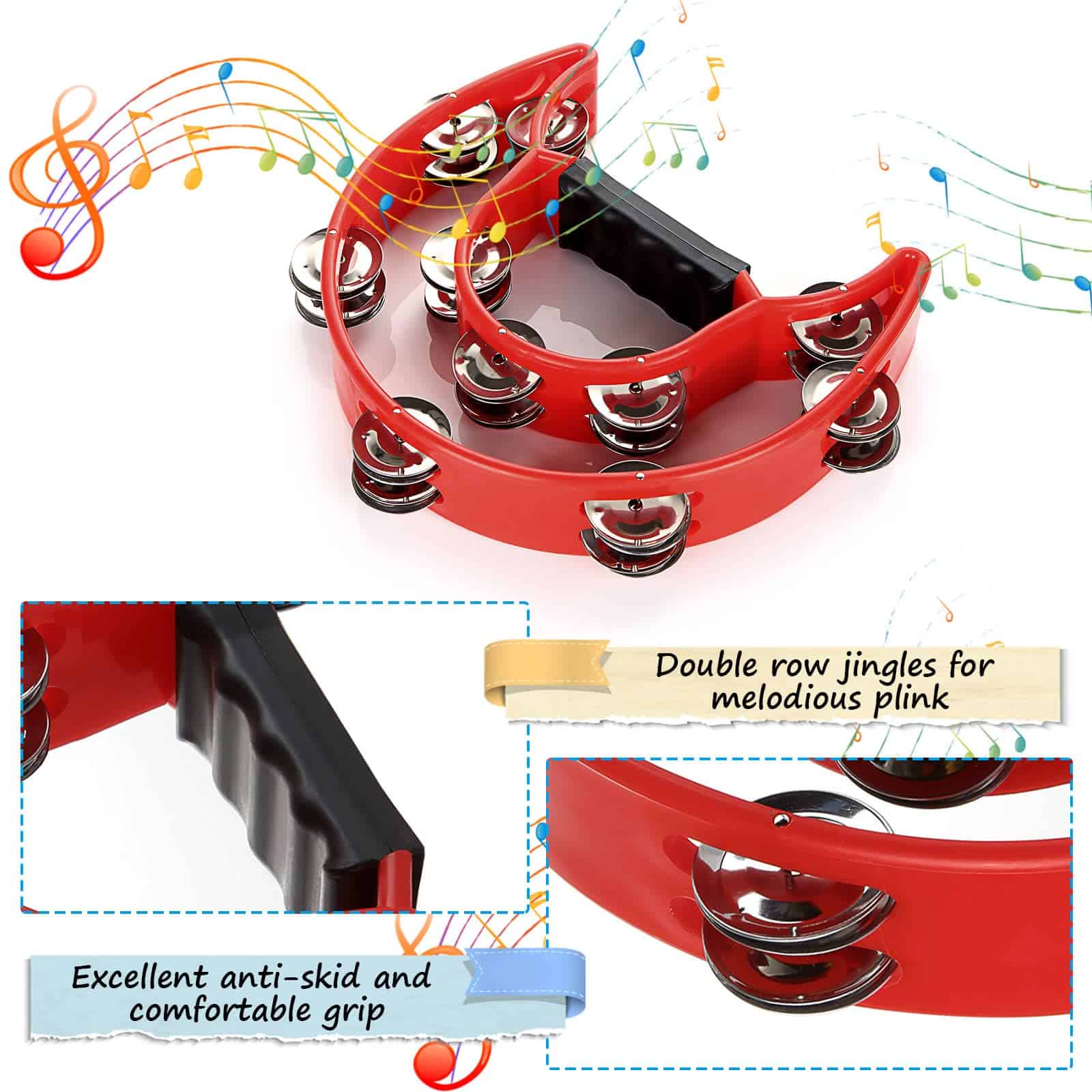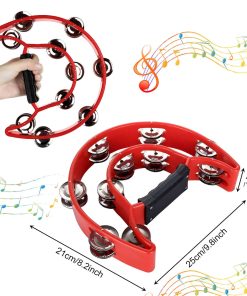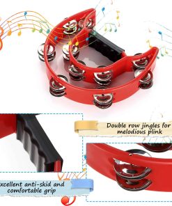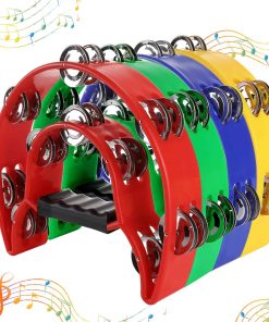 ¡Esta Pandereta Musical es un instrumento divertido! La forma de media luna de plástico cuenta con 20 cascabeles. Es de tamaño profesional y también tiene un mango de agarre cómodo de goma para un fácil manejo. Estas panderetas musicales de doble fila son un gran regalo y se pueden utilizar en una variedad de entornos, incluyendo bandas y orquestas. La pandereta de agarre se encuentra en muchas formas de música, incluyendo clásica, persa, gospel y rock. Al balancear suavemente o agitar el tambor, se escucha el sonido de la campana, resonando fuerte. Añade mucha diversión a la fiesta, baile, boda, concierto, juegos, festival, etc. Especificaciones: Material: Plástico y metal Color: Rojo, Amarillo, Azul, Verde Tamaño: 25 x 22 cm / 9.8 x 8.7″ Cantidad: Paquete de 4