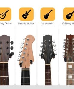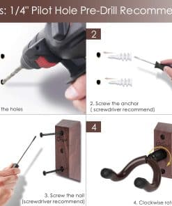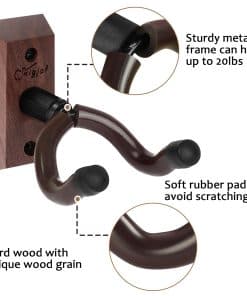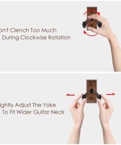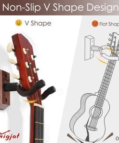 Tienes tu guitarra, tienes la música en tu mente, y ¿qué estás esperando? Lo único que necesitas es algo para sostener tu guitarra. ¡El colgador de pared para guitarra te permite mostrar tu guitarra favorita como la obra de arte que es! Este colgador de guitarra de madera real es diferente a otros soportes generales para montar guitarras. La forma en V profunda puede sostener la guitarra perfectamente sin resbalar. El gancho giratorio es adecuado para una variedad de palas no simétricas, lo que lo convierte en un gancho de pared para guitarra muy versátil. El soporte de pared para guitarra no ocupará tu preciado espacio en absoluto. También es un soporte de gancho para guitarra muy decorativo, adecuado para usar en tu estudio en casa, oficina, habitación y otros lugares. Como nota adicional, por favor asegúrate de conocer el entorno en el que vives y cómo la humedad y la luz solar pueden deformar tus materiales, y toma las precauciones necesarias antes de la instalación. Los apartamentos con paredes compartidas tienden a ser un gran factor en la caída de objetos montados en la pared.