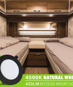 1. 4.75″ 480 Lúmenes Delgado Ultra Delgado Regulable, espesor de solo 0.70″, cuerpo liviano y compacto se adapta a lugares estrechos. Resistente a golpes y vibraciones.