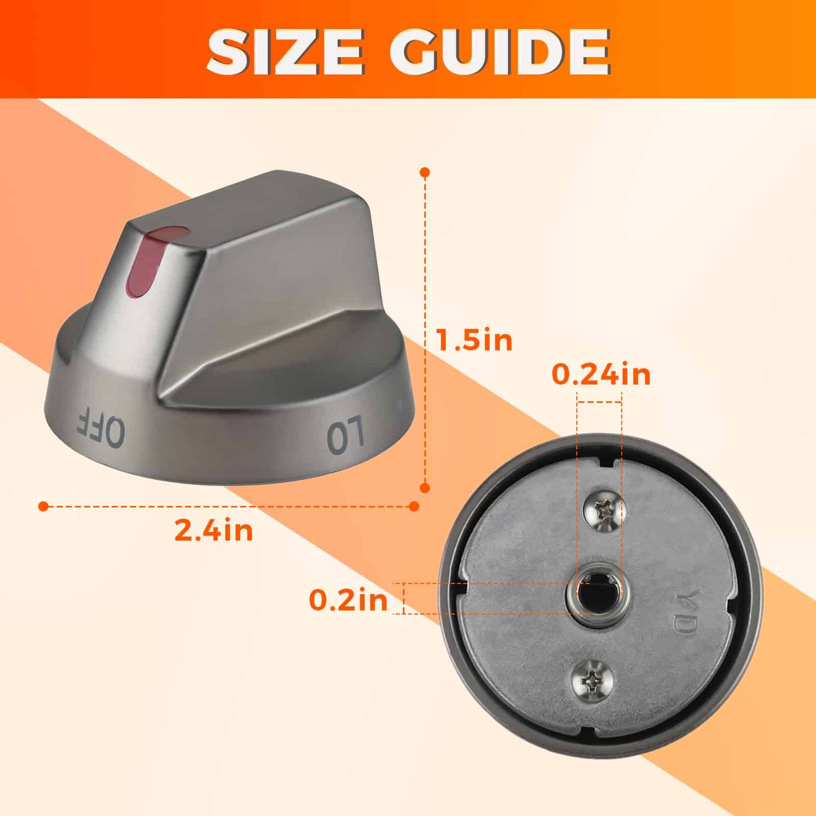1. : Nuestra perilla de estufa de gas negra DG64-00473B de reemplazo para Samsung tiene dimensiones de 2.4″L x 1.5″H, eje con forma de D: 0.25»L x 0.2»W. Por favor, revise el modelo y el tamaño antes de realizar la compra.