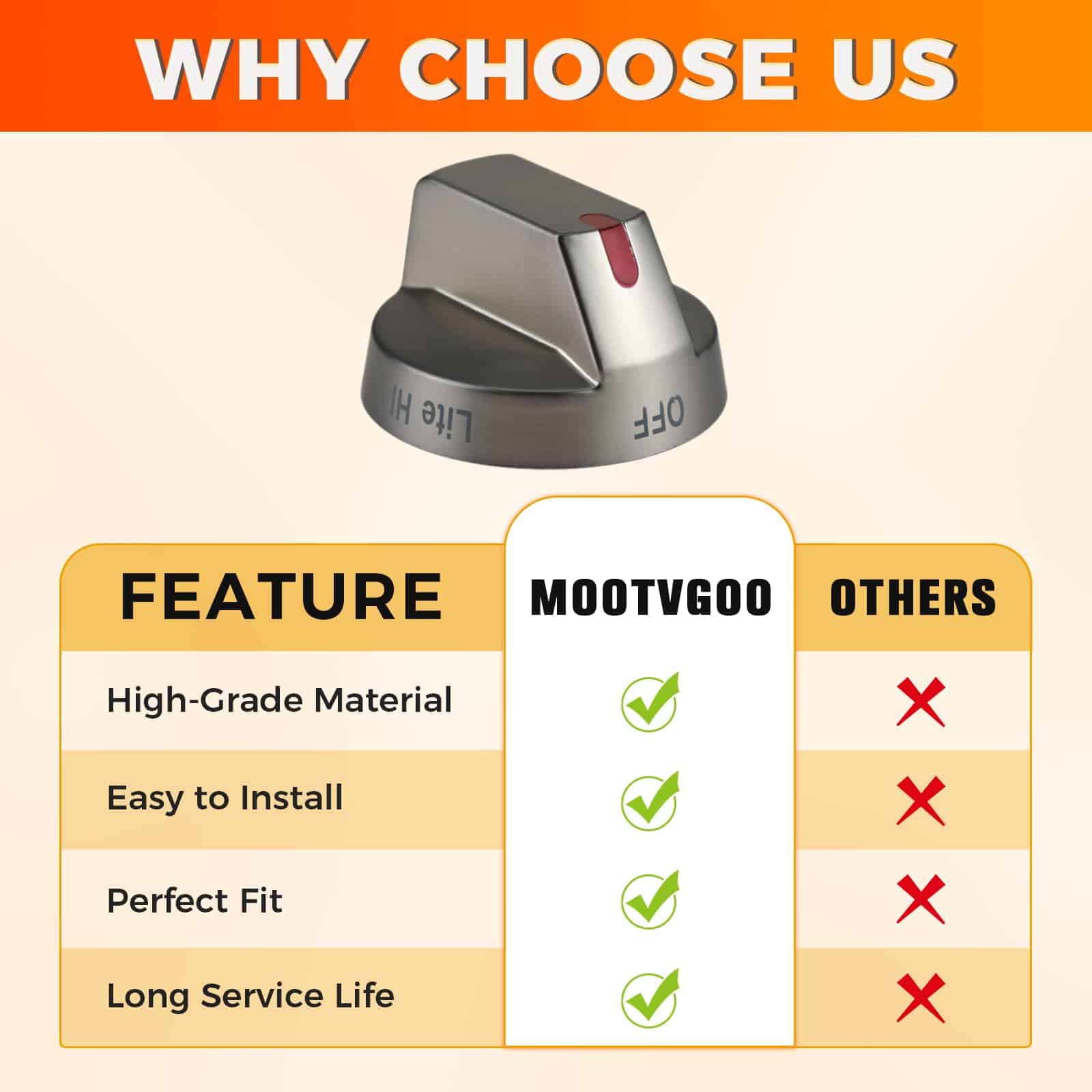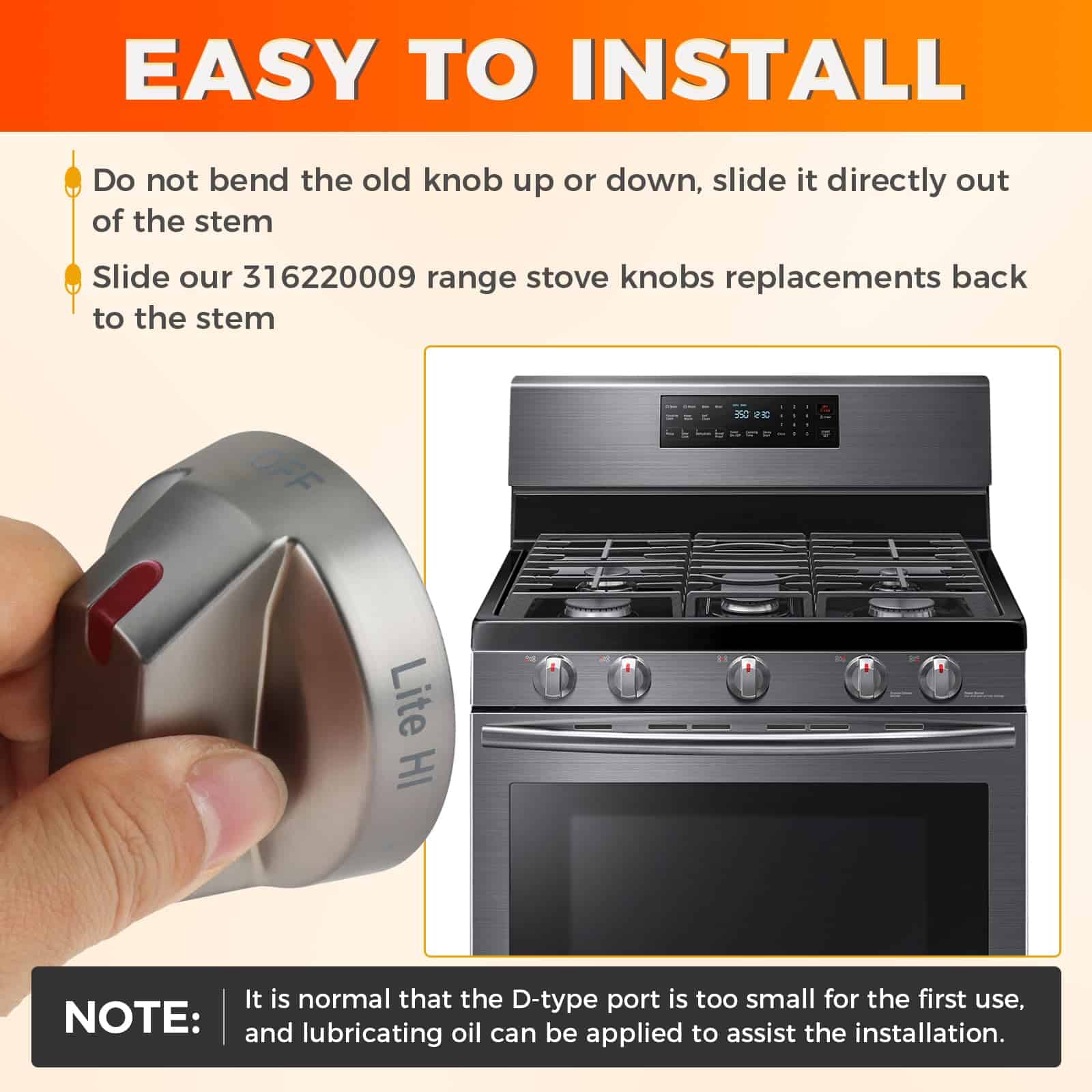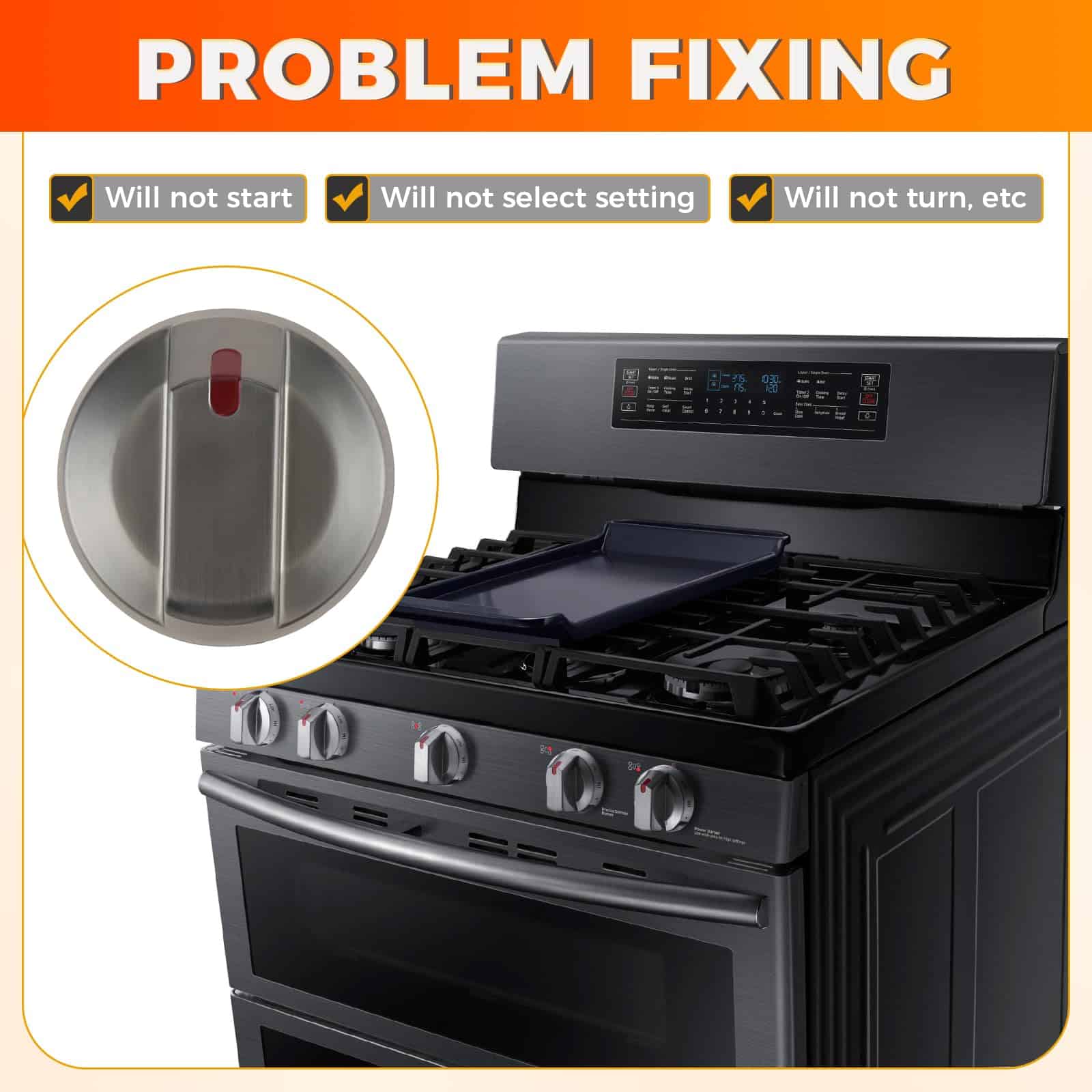 4. : Esta perilla de control de quemador de superficie de calidad de reemplazo para Samsung tiene una superficie recubierta de metal y anillo de metal, y se puede utilizar para solucionar síntomas como no enciende, no selecciona la configuración, no gira.