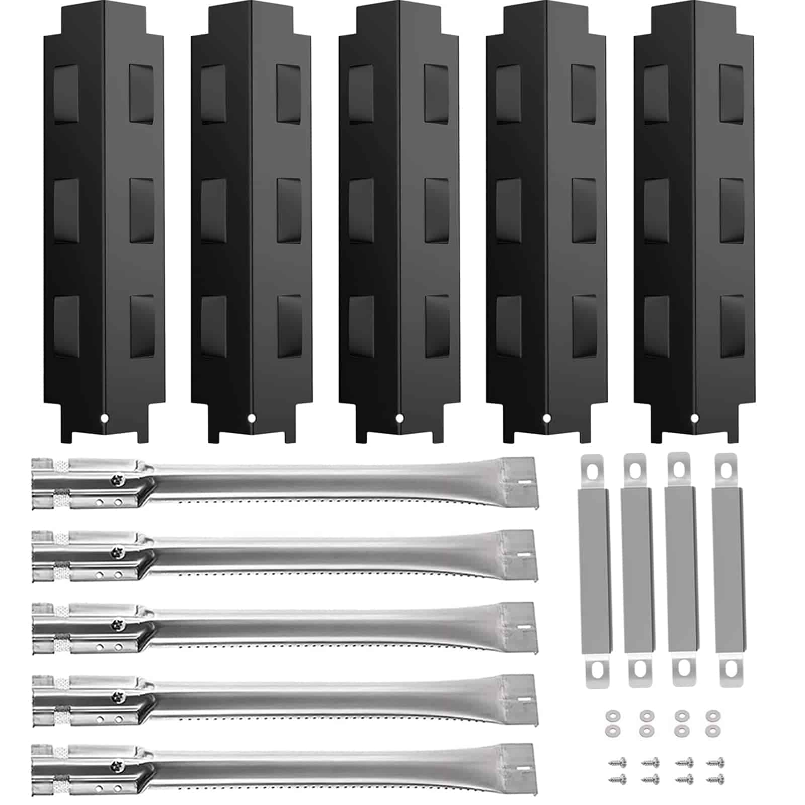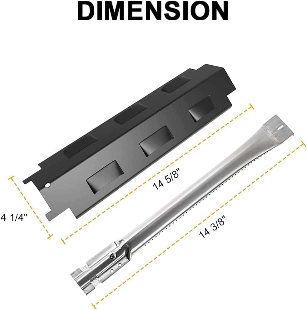 5. Paquete que incluye 5 placas de calor (14 5/8″ x 4 1/4″) + 5 tubos de quemador para parrilla (14.38 L + 4 tubos cruzados ajustables de 5 a 9 pulgadas