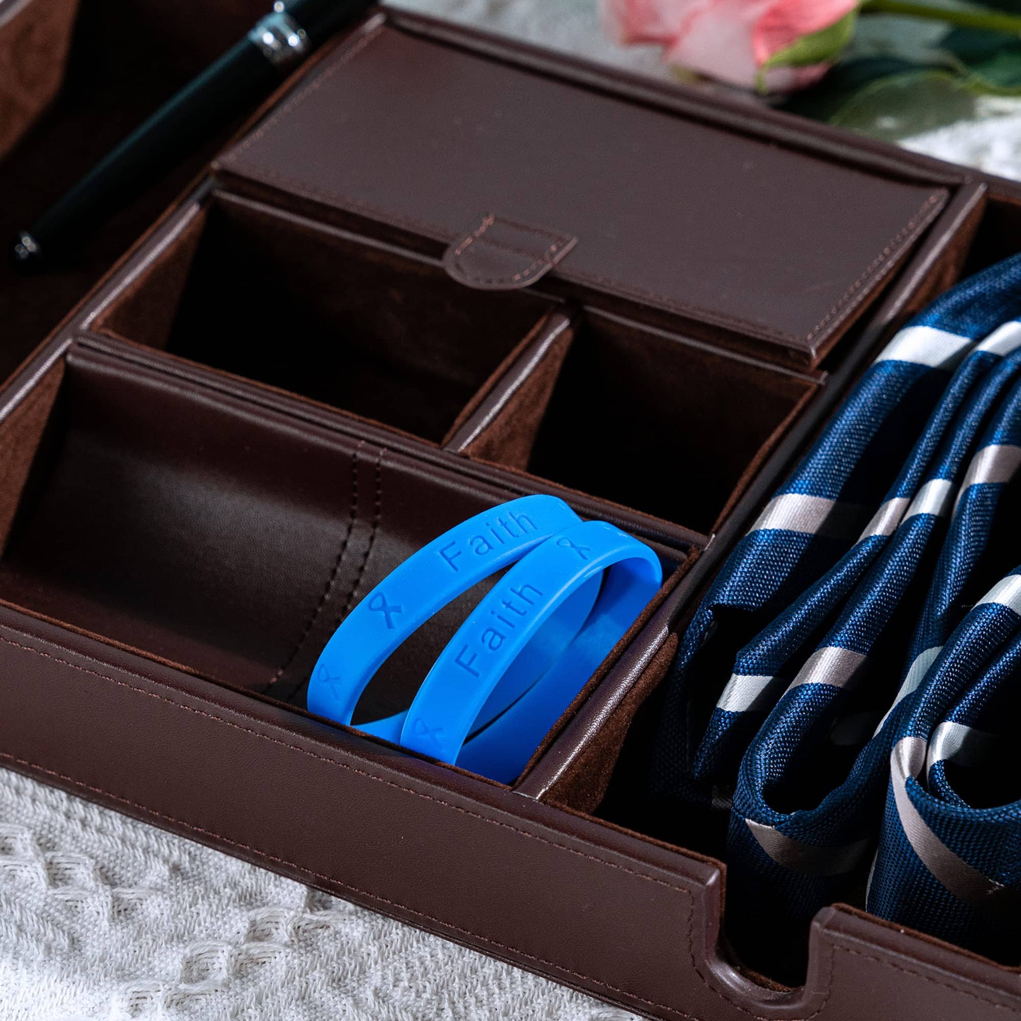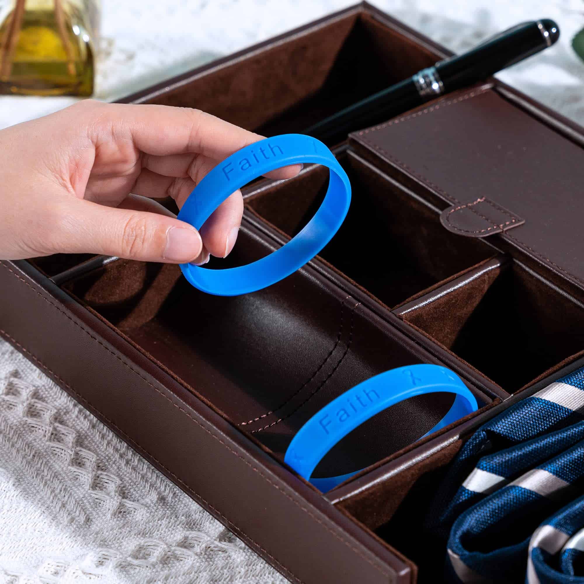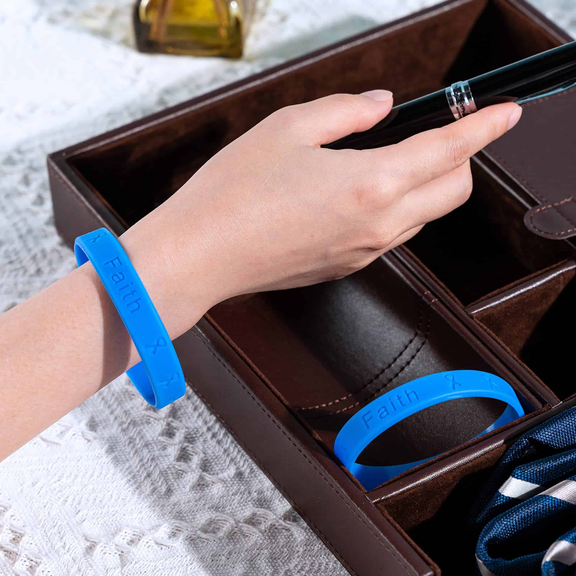 Estas pulseras de silicona periwinkle están grabadas con las palabras «Esperanza, Fe, Amor» y cintas. Estas pulseras están hechas de silicona 100% de alta calidad que puedes ver y sentir. Estas pulseras tienen 8 1/4 pulgadas de circunferencia. Este es un paquete al por mayor que contiene 50 pulseras.