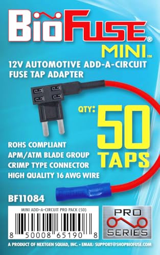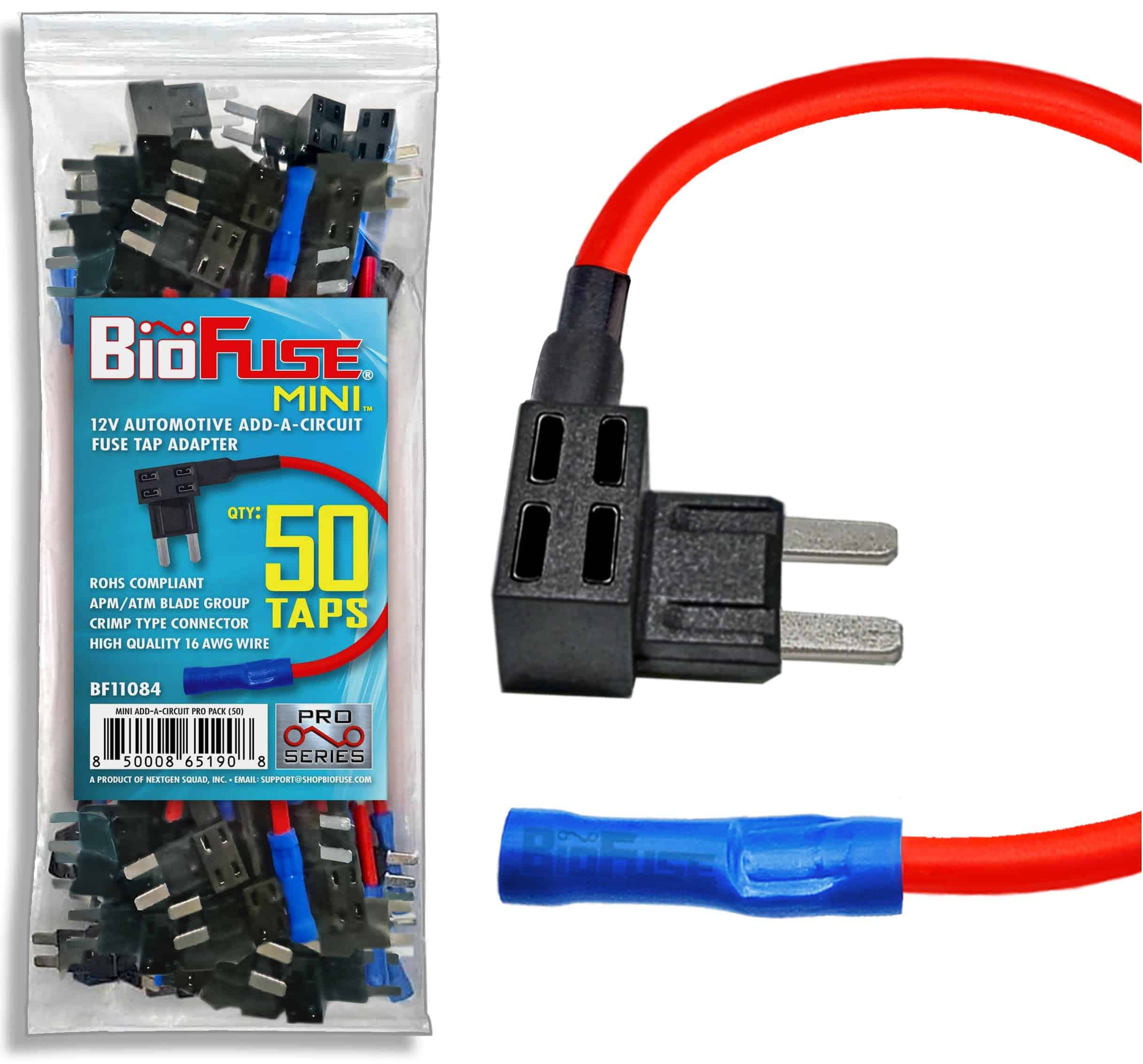 Los soportes de fusibles BioFuse están diseñados para interceptar un circuito existente de 12V en la ubicación de su caja de fusibles al agregar un circuito adicional sin la necesidad de cortar, empalmar o alterar su equipo original (OEM) del fabricante (evitando así anular la garantía existente). Los soportes de fusibles BioFuse garantizan una instalación de calidad y eficiente de dispositivos o accesorios como: cámaras en el tablero, cámaras de respaldo, luces LED, alarmas, estéreos, cajas negras, unidades GPS, puertos USB y más. El cable de calibre 16 está destinado para circuitos de 12-13V DC a .5-15 amperios. Con una calificación de voltaje general de DC32V, es adecuado para uso automotriz y no automotriz en vehículos marinos, botes, autos, camiones, RV, ATV, UTV, carros de golf, triciclos, motos de nieve y otros dispositivos electrónicos. Los conectores de aleación tipo MINI con conector tipo prensa están diseñados para una fácil instalación y cuentan con aislamiento de cloruro de polivinilo (PVC). El cable de cobre estañado trenzado y aislado es de tipo AWM 1015. Disfrute de la tranquilidad con nuestra garantía limitada de 1 año. En caso de encontrar productos defectuosos, BioFuse los reparará o reemplazará sin costo alguno. La satisfacción del cliente es nuestra principal prioridad, por lo que ofrecemos una garantía de devolución del dinero de 30 días.