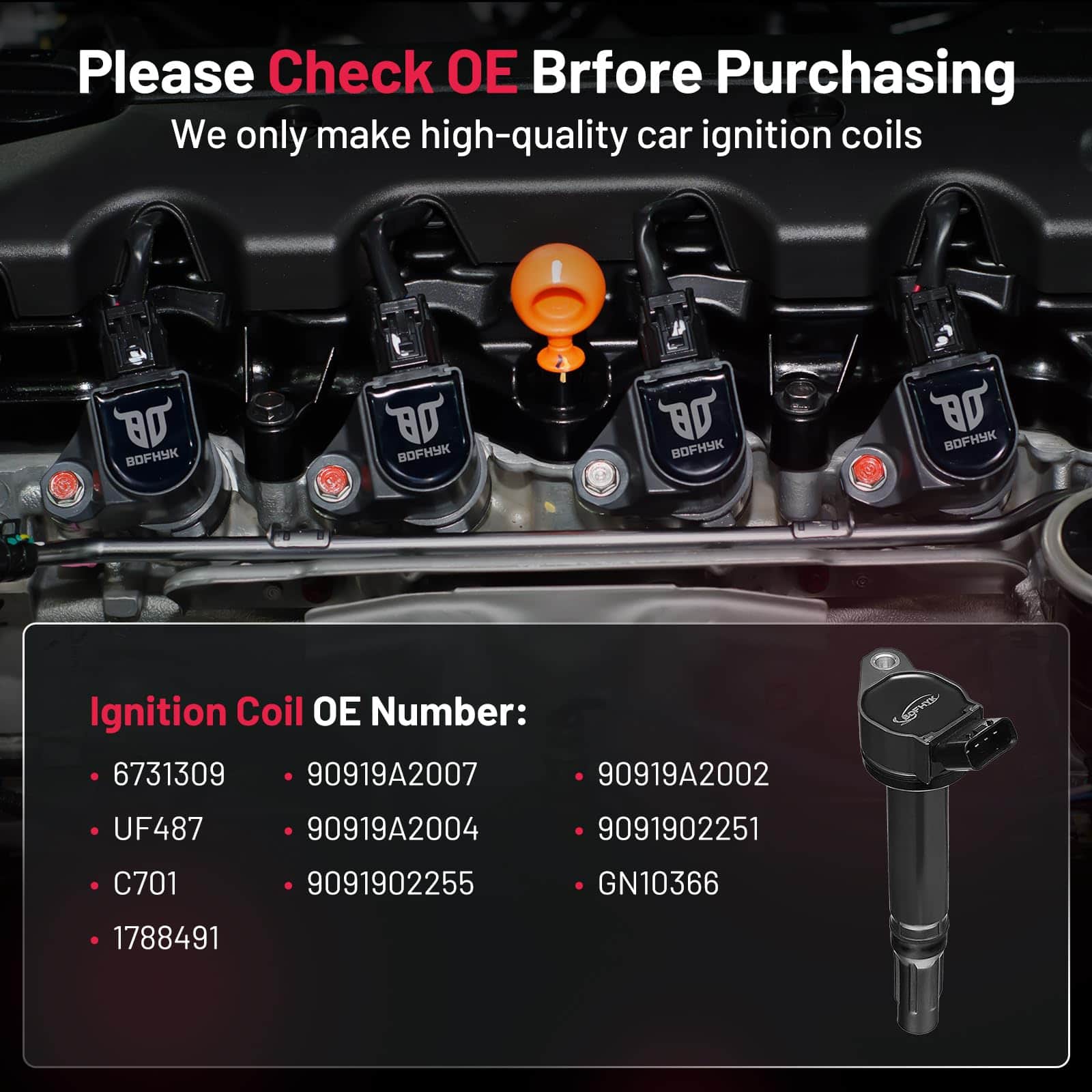 Las bobinas de encendido BDFHYK son compatibles con una variedad de modelos Toyota y Lexus, incluyendo 4Runner, Camry, Sienna, GS300, GS350, y más. Fabricadas con materiales de alta calidad para resistir el calor, la abrasión y la corrosión, garantizando una larga vida útil. Las bobinas han sido probadas en condiciones extremas para asegurar una salida estable de alto voltaje. BDFHYK es un fabricante de partes automotrices con más de 10 años de experiencia, comprometido con brindar un excelente servicio al cliente.