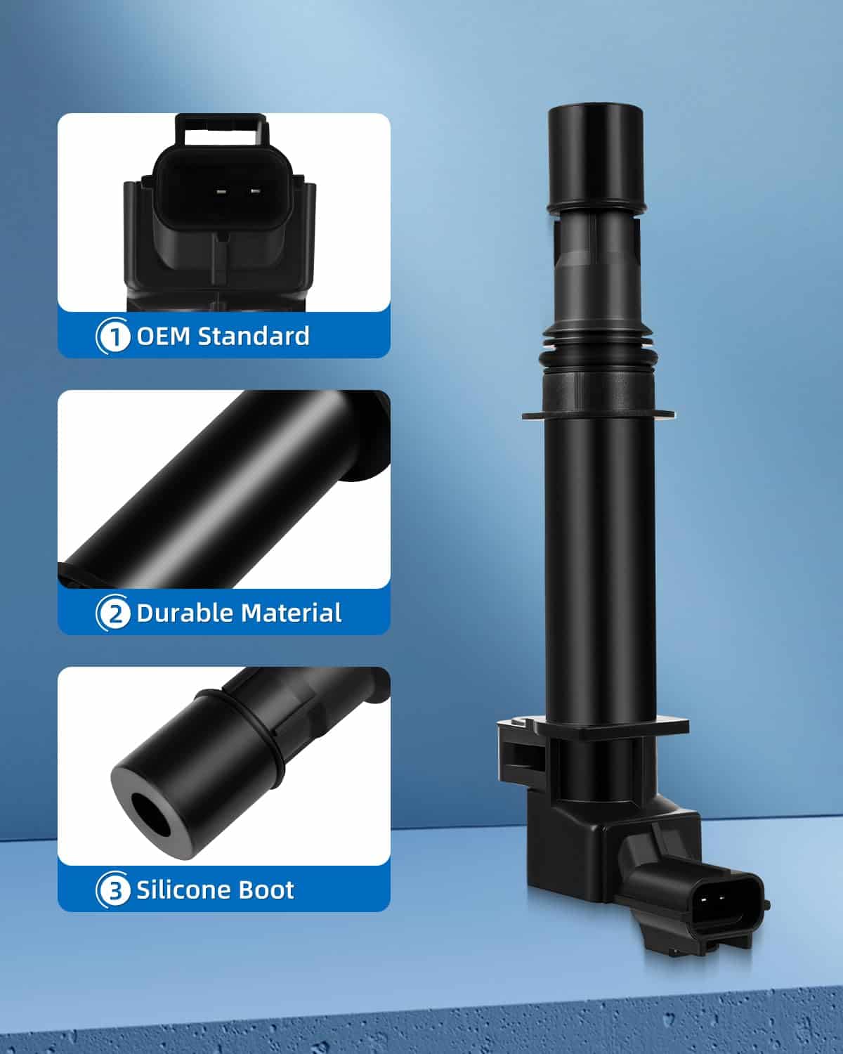 3. MATERIALES DE CALIDAD PREMIUM – Hechas de materiales de primera calidad, para una mayor estabilidad y confiabilidad, superando el estándar OEM, ayuda a resolver los problemas causados por bobinas defectuosas como temblores en ralentí, condiciones de fallo/no arranque y encendido de la luz del motor. Utilizamos el servicio integral de selección de materiales, producción e inspección de calidad para hacer que esta bobina sea más duradera y duradera.