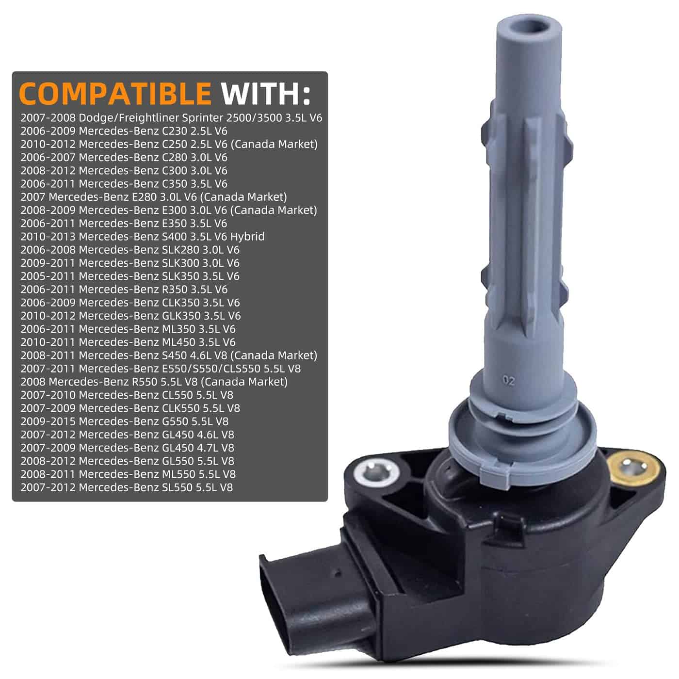 DEAL Pack of 6 Ignition coils Compatibles con C230 C250 C280 C300 C350 E300 E280 E300 S400 SLK300 2.5L 3.0L 3.5L V6 Reemplaza # UF535 UF585 C1691. Para garantizar un ajuste perfecto, verifique antes de comprar. Incluido en el paquete: 6x paquete de bobinas de encendido de especificación OE; Ofrecemos una garantía ilimitada de 2 años sin límite de millas. Reemplaza los números de parte: 0001501980, 19005267, 68011844AA, 2729060060, 0001502680, 0001502780, UF535, UF585, C1691, GN10235, 5C1748, 522103, 788432, 1502780, 1502680, 178-8529, 00501, 1501980, 1788432, W221, W216, R230, R171, W463, X204, W203, W204, C209, A209, W211, W212, W219, X164, W164, W251, B221, C1656. Rendimiento premium: Las bobinas de encendido con cable de cobre de precisión ofrecen un rendimiento mejorado, durabilidad y funcionamiento confiable. Diseñadas para mejorar la eficiencia de encendido, estas bobinas pueden contribuir a una mejor economía de combustible, un funcionamiento más suave del motor y una vida útil más larga. Ajuste preciso: Cada bobina de encendo es diseñada según los estándares OE y se somete a rigurosas pruebas de calidad. Reemplazo directo diseñado para una compatibilidad perfecta, reduciendo los riesgos de instalación al tiempo que ofrece un rendimiento de chispa confiable.