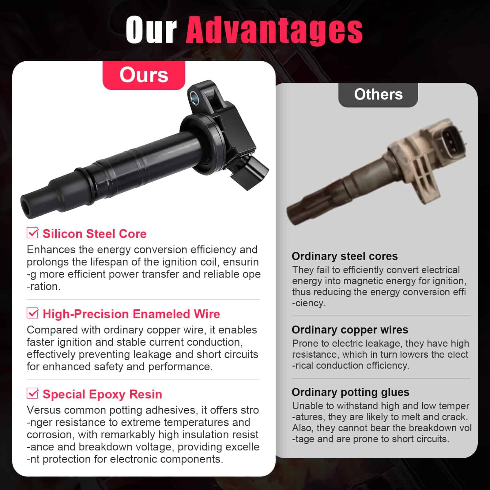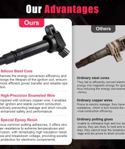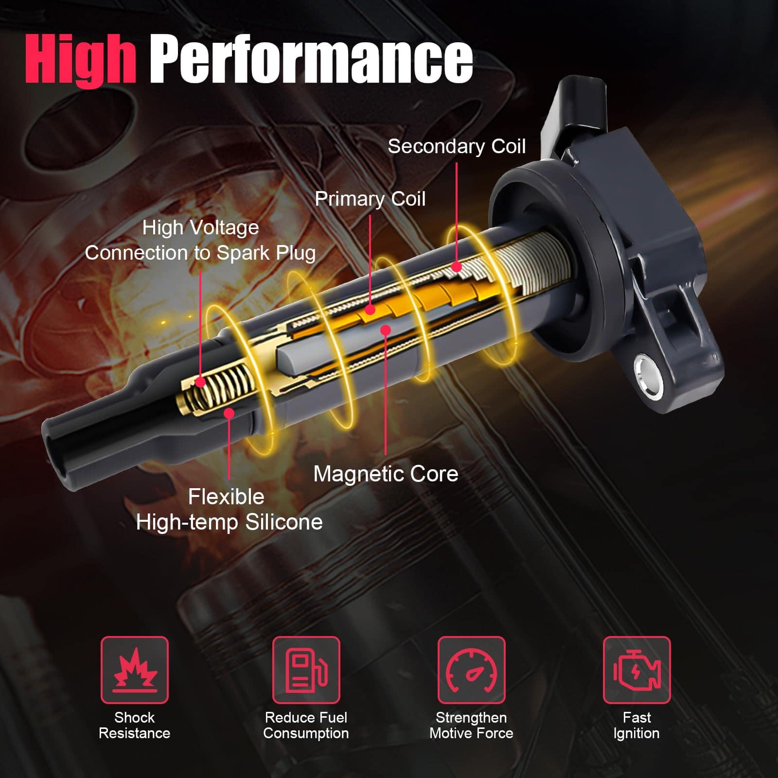 4. Excelente Función: Después de aproximadamente 50,000 kilómetros de conducción, tus paquetes de bobinas pueden empezar a mostrar signos de envejecimiento, lo que puede provocar fallos en el motor, ralentí irregular, disminución de la potencia y un mal rendimiento de combustible. Nuestros paquetes de bobinas meticulosamente diseñados y mejorados están fabricados para superar los estándares OEM, garantizando una instalación sin problemas y mejorando drásticamente el rendimiento. Experimenta capacidades excepcionales de arranque en frío y un funcionamiento del motor más suave.