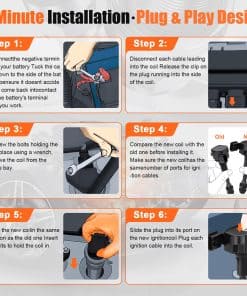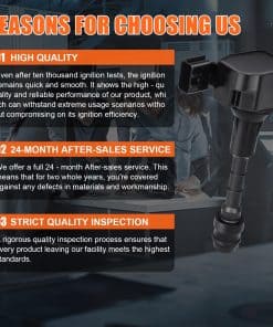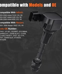 Este paquete de 6 bobinas de encendido es compatible con modelos de vehículos Infiniti como FX35, G35, M35, 350Z, entre otros. Reemplaza la bobina UF401, UF-401, IGC0007, 610-58649, 22448AL61C, 22448-AL61C, C1439, 5C1430, 178-8317, E421, 52-1774, IC521, 22448-AL61, 6734025, GN10246. Experimenta un aumento del 20% en la potencia con devanados barnizados alemanes que reducen la resistencia y botas de silicona japonesas que ofrecen un 30% más de resistencia al calor. Solución completa de sistema de encendido para resolver problemas comunes como ralentí áspero, luz de check engine, aceleración deficiente y desperdicio de combustible. Disfruta de una durabilidad de grado militar con un sistema de protección de tres capas que incluye encapsulación de epoxi con clasificación impermeable IP67, núcleo de acero de silicio que ofrece un 40% más de resistencia a la vibración y una carcasa de aleación de cobre-níquel que proporciona un 35% más de eficiencia en la disipación de calor. Con una garantía de 24 meses, devoluciones sin complicaciones de 30 días y soporte técnico disponible todo el año de 9 am a 9 pm EST, con un tiempo de respuesta promedio de menos de 60 minutos. Nuestro equipo de soporte dedicado está disponible para ayudarte en cualquier momento.