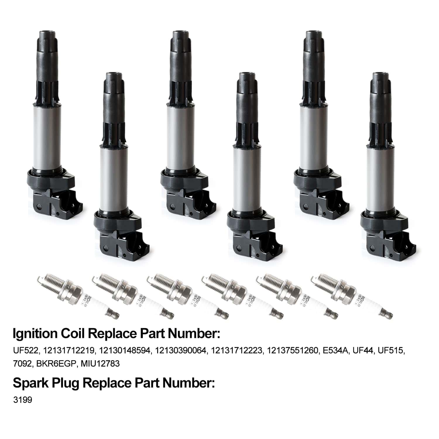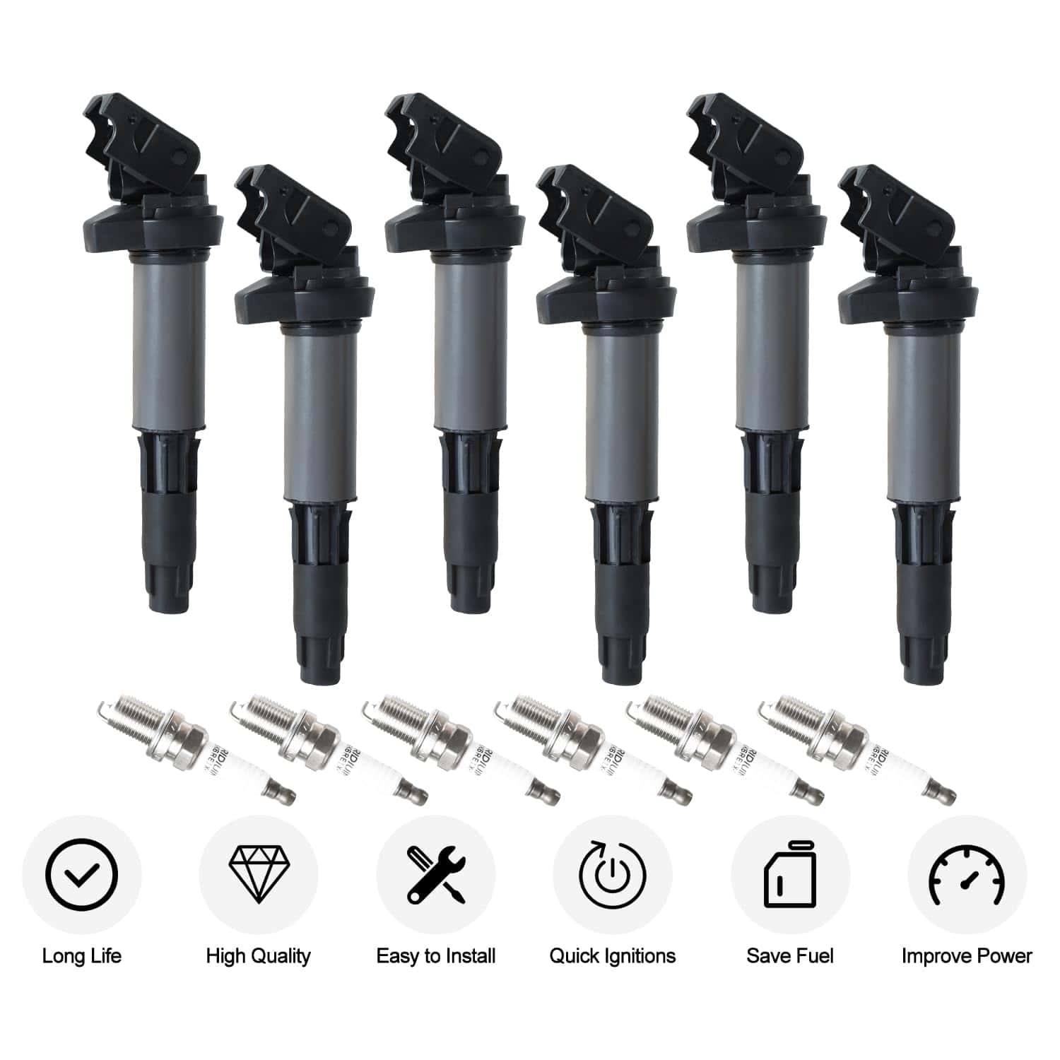 Paquete que Incluye: 6 Bobinas de Encendido + 6 Bujías de Iridio Nota: Utilice el número de VIN para obtener el número de parte original (OE). Asegúrese de que el número de modelo, número de parte y foto sean iguales que los suyos antes de realizar el pedido. Recomendamos la instalación profesional si no está familiarizado con ello. Tenga cuidado al instalar y probar, de lo contrario, causará daños a las piezas. La comunicación es la mejor manera de resolver el problema. Si tiene algún problema después de la compra, contáctenos a tiempo, antes de abrir una devolución o caso.
