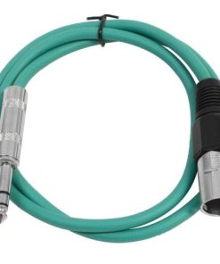 Paquete de 6 Cables de 2 pies XLR Macho a 1/4 pulgadas TRS en color verde. Modelo: SATRXL-M2 (Paquete de 6). Cable con conector XLR Macho de 3 pines en un extremo, y conector 1/4″ TRS en el otro extremo (macho). Cubierta de goma flexible resistente. Longitud de 2 pies para cada cable. Cables blindados. Estos cables son completamente nuevos, con garantía de un año. Los cables balanceados XLR a 1/4″ se utilizan típicamente para conectar mezcladores a ecualizadores, crossovers, compresores o amplificadores. Algunos mezcladores o equipos montados en rack tienen conexiones XLR mientras que otros tienen conectores 1/4″. Ideales para adaptar ambos tipos de conexiones. Conductores de cobre libre de oxígeno (OFC) de calibre 22 para una claridad de señal mejorada y una superior rechazo de RF.