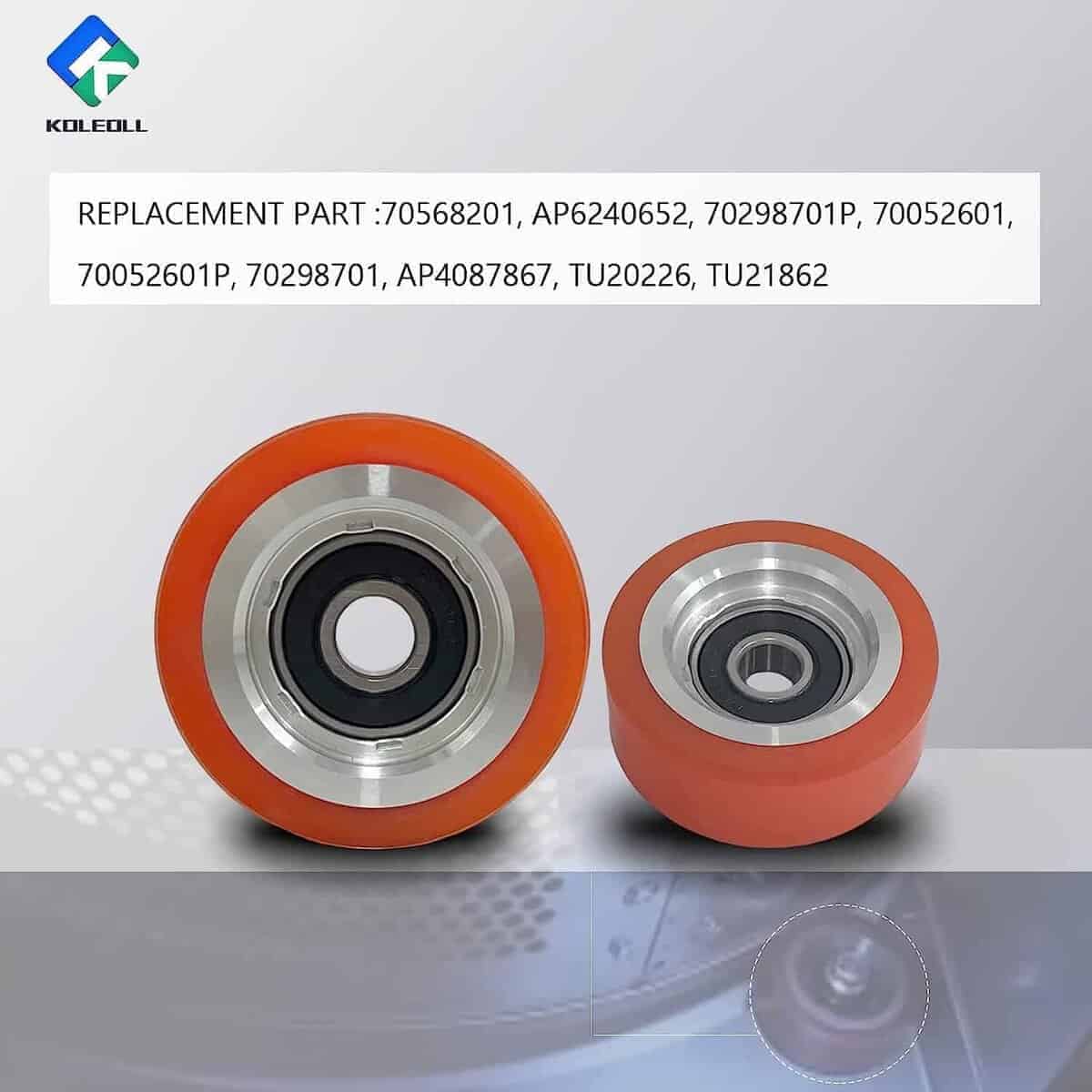 El rodillo de soporte 70298701P está hecho de plástico de poliuretano, que es más resistente al desgaste y más elástico que el mismo tipo de producto de caucho. El núcleo de la rueda está hecho de material de aleación de aluminio forjado de alta resistencia, que reemplaza el núcleo de rueda de hierro anterior, evita la oxidación y el óxido, hace que la rueda sea más ligera y más absorbente de impactos, aumenta la estabilidad de la rotación de la máquina, reduce el ruido y aumenta el tiempo de uso. La instalación del Rodillo de Secadora 70298701P es un proceso sencillo. Es compatible con modelos de secadoras selectas y viene con el hardware necesario para una instalación rápida y sin problemas. Parte de reemplazo para: 70568201, AP6240652, 70052601, 70052601P, 70298701, AP4087867, TU20226, TU21862. Parte de reemplazo para modelos de secadoras: JT0300 o ST0300, 25, 30, T30, 35, T45 y 55 secadoras de tambor, etc. Actualice el rendimiento de su secadora con el confiable Rodillo 70298701P. Su rotación suave, construcción duradera y compatibilidad con modelos de secadoras selectas lo convierten en una parte de repuesto esencial para mantener una eficiencia de secado óptima. KOLEOLL ofrece piezas de repuesto asequibles de alta calidad que garantizan un ajuste preciso y son asequibles en comparación con el costo del fabricante original para que pueda comprar con confianza.
