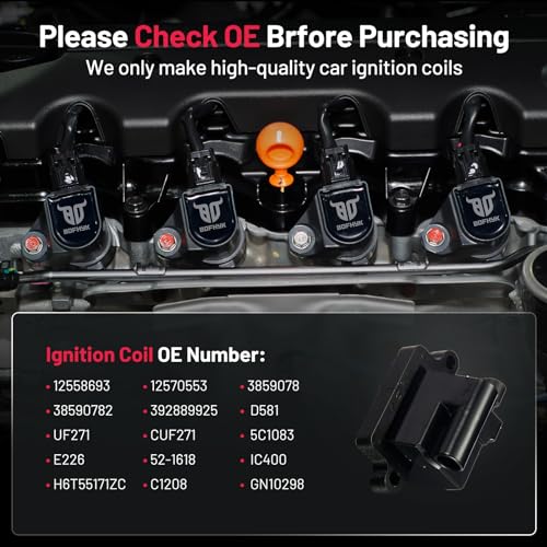 2. REEMPLAZO DIRECTO/ACTUALIZACIÓN – Sobre sus bobinas de stock originales. Solo utilizamos materiales de la más alta calidad. Esto hace que nuestro producto sea duradero y confiable en condiciones extremas, proporcionando una alta resistencia eléctrica, una chispa fuerte en las bujías y siendo resistente a la corrosión y abrasión. 3. NÚMEROS DE PARTE COMPATIBLES – 12556893, 12558693, 12570553, 3859078, 38590782, 392889925, D581, UF271, CUF271, 5C1083, E226, 52-1618, IC400, H6T55171ZC, C1208, GN10298. 4. ALTA CALIDAD – CALIFICADO ISO/TS 16949 – Nuestras bobinas de encendido están probadas y cumplen o superan los requisitos de desempeño OEM, comprar bobina de encendido BDFHYK puede ahorrarle más de $50-$100 en tiendas de autopartes en EE. UU. 5. COILS PACK FITS – Compatible con Chevrolet C4500 C5500 C6500 C7500 Kodiak, GMC C4500 C5500 C6500 C7500 C8500 Topkick, Workhorse R26 W18 W20 W21 W22 W24 W25 W62 W16, Workhorse Custom Chassis W18 W22 W24 R26, Hummer H2, Isuzu NPR-HD, Compatible con Cadillac Escalade ESV EXT, GMC Yukon 1500 2500, GMC Savana 1500 2500 3500, Workhorse FasTrack FT1061 FT1261 FT1461 FT1601 FT1801, GMC Envoy XL XUV, Isuzu NPR, Compatible con Chevrolet Avalanche 1500 2500/Tahoe/SSR. Más información se puede encontrar en las imágenes o en la página de detalles.