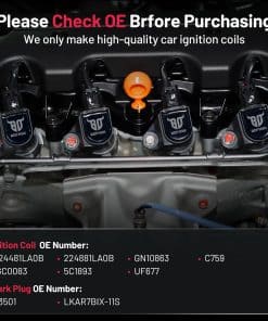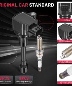 Este paquete incluye 8 bobinas de encendido UF677 y 8 bujías de iridio 93501 compatibles con INFINITI QX80 V8 5.6L 2014-2021, Nissan Armada V8 5.6L 2017-2020, INFINITI QX56 V8 5.6L 2011-2013. Las bobinas de encendido de alta calidad están fabricadas con material de acero de silicio, caucho importado de Japón y alambre barnizado importado de Alemania, lo que garantiza una larga vida útil y calidad superior. Las bujías profesionales están hechas de electrodos de iridio y cerámica única para un arranque rápido y una aceleración potente. Si tu automóvil presenta problemas como temblores, fallos en el arranque, aceleración lenta y aumento del consumo de combustible con más de 80000 km, es necesario cambiar el juego de bujías y bobinas. El paquete de bobinas de encendido y bujías de BDFHYK puede ofrecerte una experiencia de usuario profesional y hacer que tu automóvil parezca nuevo. Elige BDFHYK, elige un buen servicio.