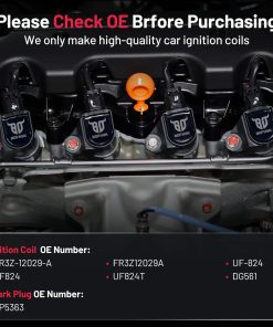 1. Información básica: La bobina de encendido UF824 y las bujías XP5363 son compatibles con F-150 V8 5.0L 2016-2017, Mustang V8 5.0L 2016-2017. Por favor, consulte la información detallada de compatibilidad en las imágenes o en la página de detalles. Elija el paquete de bobinas y bujías adecuado con confianza.