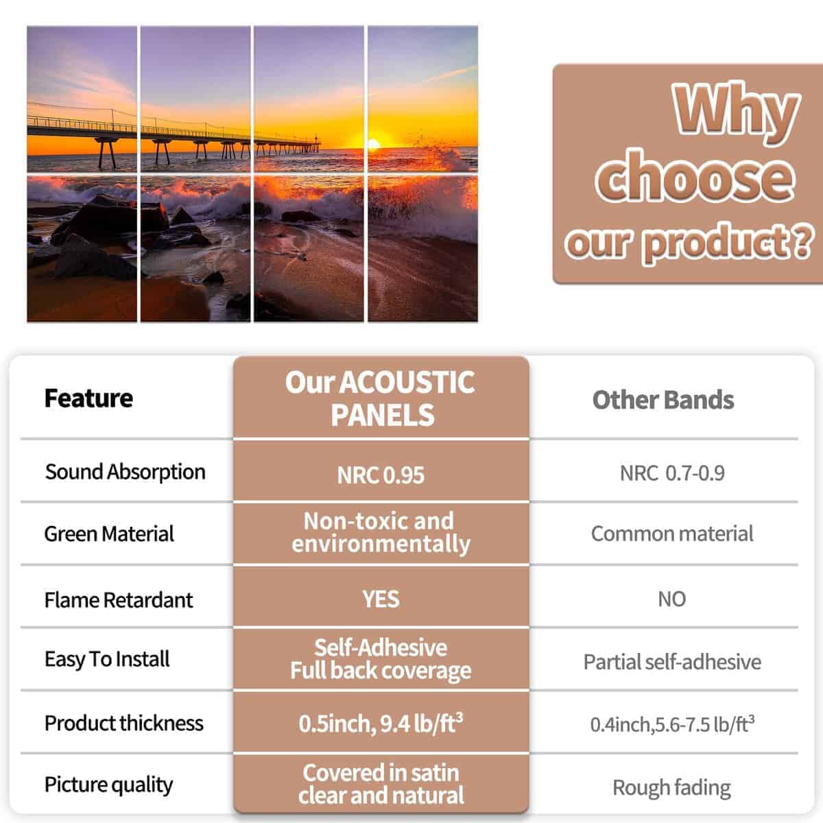 Paquete de 8 Paneles Acústicos – 48″x32″x0.5″ Paneles