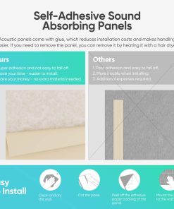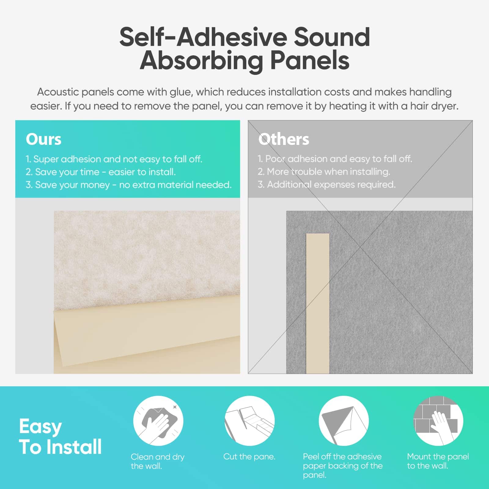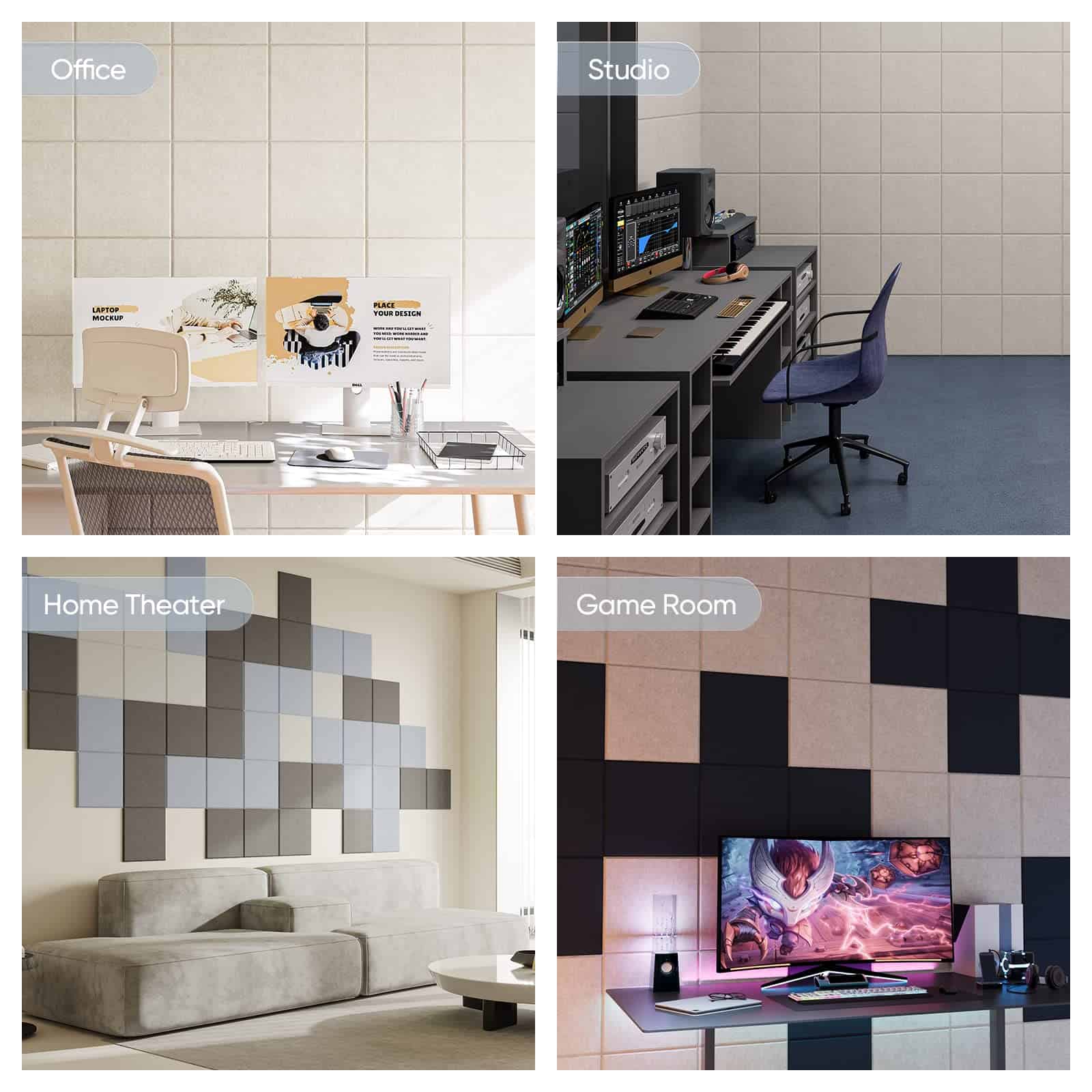 Los paneles acústicos Berlai tienen propiedades superiores de absorción de sonido y reducción de ruido, lo que los convierte en una solución perfecta para el tratamiento acústico en interiores. Con una instalación sencilla en las paredes o techos, estos paneles de aislamiento acústico mejorarán la acústica de la habitación al reducir eficazmente el ruido no deseado. Hechos de material acústico premium, fibra de poliéster 100%, estos paneles de espuma acústica son seguros y no tóxicos, ideales para su uso en estudios de grabación de música, cabinas vocales, salas de juego, salas de control, así como en teatros en casa y oficinas. Los paneles cuadrados más grandes garantizan una cobertura total y son fáciles de cortar para adaptarse a sus necesidades de instalación. Sus bordes biselados no solo mejoran el tratamiento acústico, sino que también proporcionan un acabado decorativo en la pared, con múltiples opciones de color disponibles para personalizar su espacio. Los paneles acústicos adhesivos de reducción de ruido cuentan con pegamento en la parte trasera, lo que simplifica su instalación sin requerir herramientas adicionales, ahorrándole costos y tiempo. Para mantener la limpieza de los paneles de reducción de ruido, simplemente use una aspiradora o un paño húmedo. Además, garantizamos un servicio postventa completo y una garantía de 12 meses, por lo que si tiene algún problema, no dude en ponerse en contacto con nosotros. Su satisfacción es nuestra prioridad en Berlai.