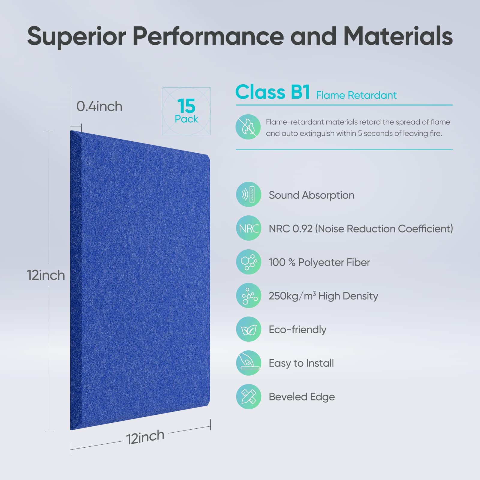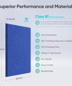 Fabricados con material acústico de primera calidad – fibra de poliéster 100%, los paneles acústicos Berlai son seguros y respetuosos con el medio ambiente, ya que son inodoros y no tóxicos. Además, estos paneles de espuma acústica retardante de llama garantizan un rendimiento duradero y una óptima absorción de sonido en diferentes frecuencias.