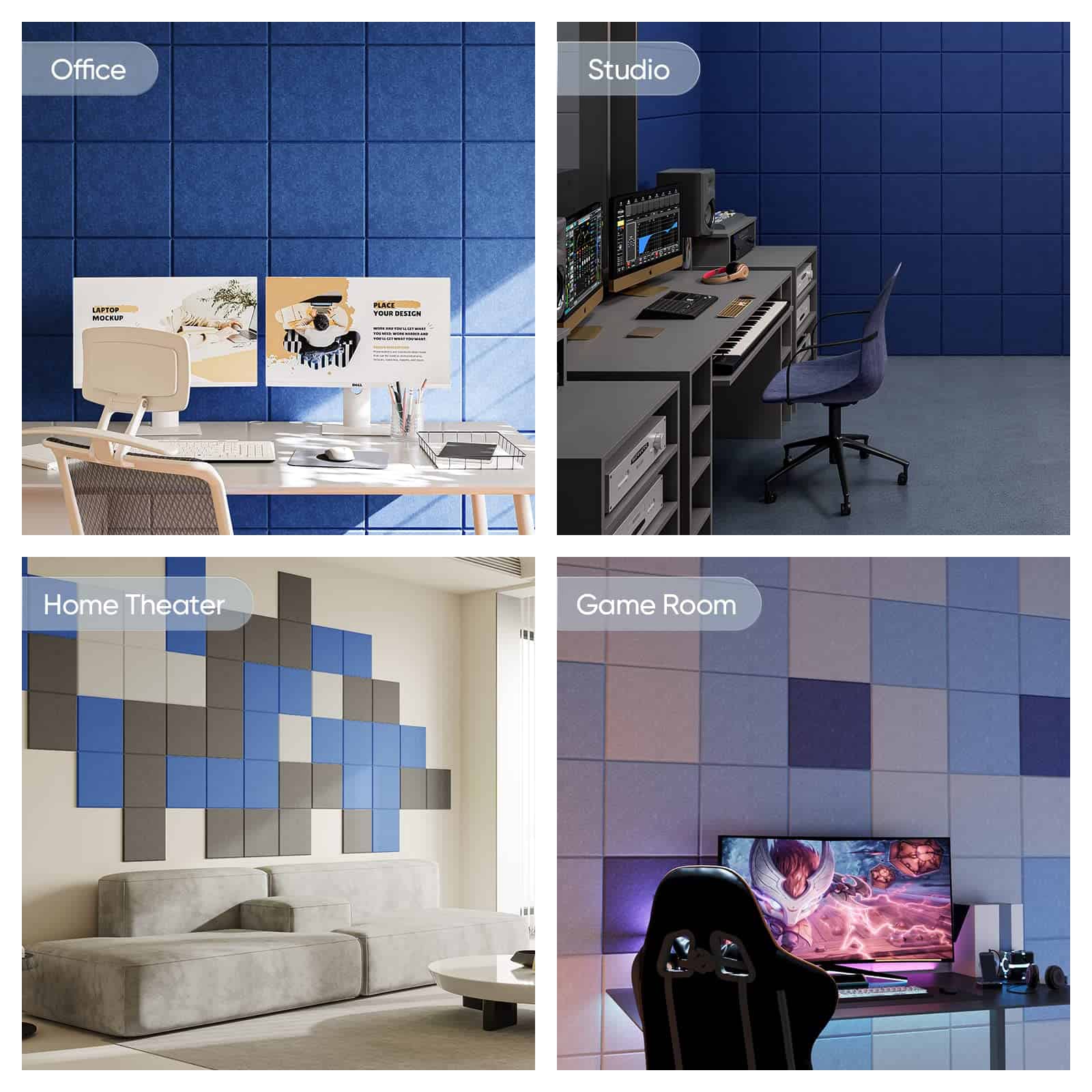 Su diseño de baldosas cuadradas asegura una cobertura total del espacio, mientras que sus bordes biselados ofrecen un acabado elegante y decorativo en la pared. Disponibles en una variedad de colores, los paneles acústicos Berlai te permiten personalizar la estética de tu habitación, creando una experiencia sensorial única y atractiva.