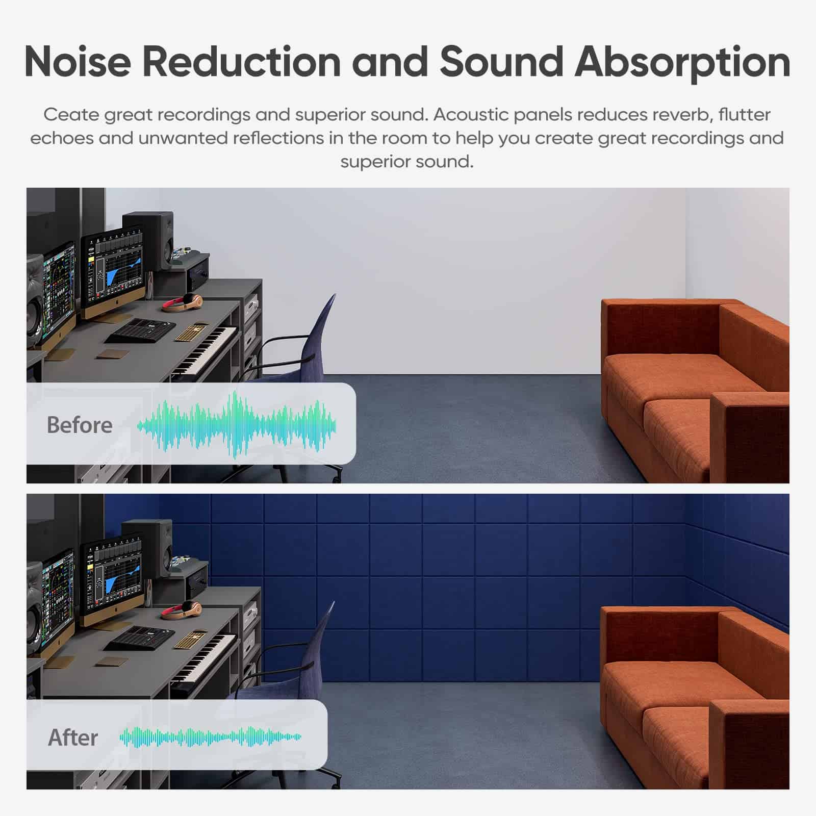 Los paneles acústicos Berlai son la solución perfecta para mejorar la calidad acústica de cualquier habitación. Con propiedades superiores de absorción de sonido y reducción de ruido, estos paneles acústicos de alta densidad están diseñados para satisfacer las necesidades de cualquier entorno, ya sea un estudio de grabación profesional, una sala de cine en casa, una oficina o cualquier otro espacio donde se requiera un tratamiento acústico eficaz.