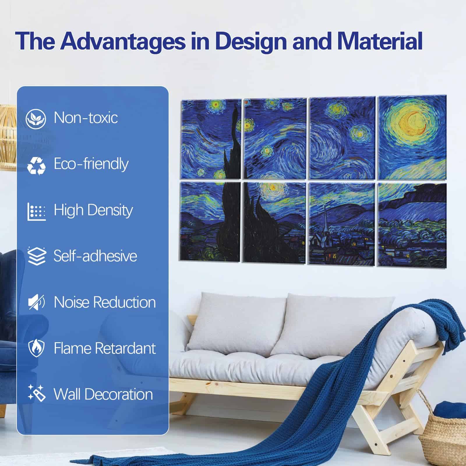 Paquete de 8 Paneles Acústicos de Arte Tutmyrea, 48″X32″