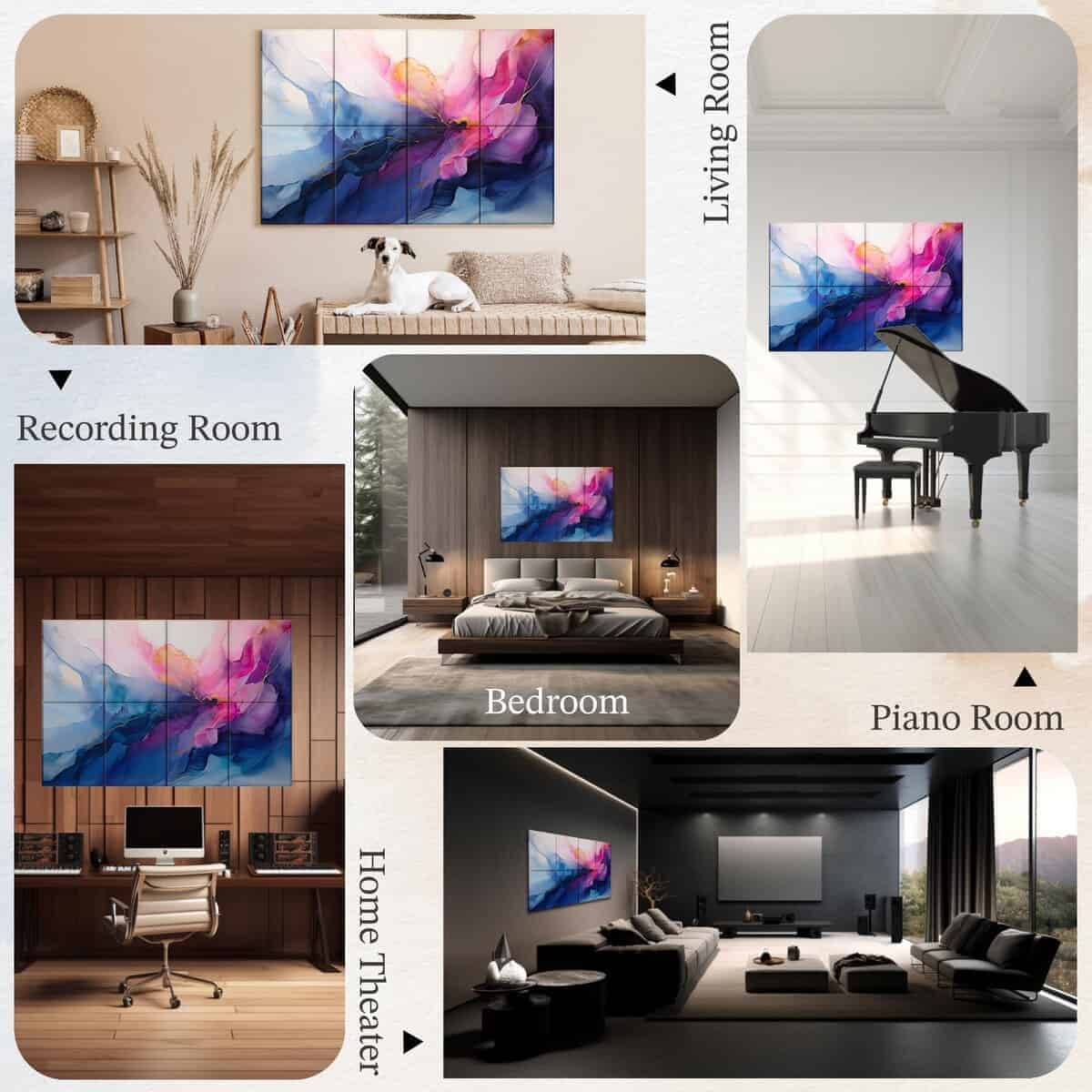 1. Aislamiento acústico superior: Construidos con material de fibra de poliéster de alta densidad, nuestros paneles destacan en absorción de sonido, reduciendo efectivamente el ruido no deseado y mejorando la calidad del sonido. 2. Colaboración artística: Eleva tu experiencia de insonorización con un toque de arte. Cada panel presenta diseños seleccionados de artistas reconocidos, convirtiéndolos en una fusión de excelencia acústica y expresión artística. Estas colaboraciones de diseñadores de edición limitada crean una estética única y exclusiva que realza tanto la calidad del sonido como el atractivo visual. 3. Fibra de poliéster resistente al fuego: Elaborados con material de fibra de poliéster resistente al fuego, estos paneles priorizan la seguridad sin comprometer la excelencia acústica. 4. Instalación sencilla: Cada paquete de 8 incluye 50 puntos adhesivos dobles transparentes, permitiendo un proceso de instalación sin complicaciones y preciso. No se requieren herramientas, asegurando una experiencia perfecta para configurar tus paneles acústicos. 5. Aplicación versátil: Adecuados para varios entornos, desde estudios de grabación y salas de cine en casa hasta oficinas y salas de conferencias, mejorando tanto la acústica como la estética visual.