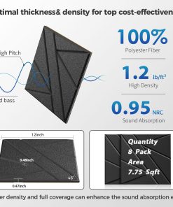 1. Excelente Calidad: Este panel de espuma insonorizante para pared está hecho de poliéster 100% de alta calidad, inodoro y retardante de llama. No hay riesgos asociados con pasar largos periodos de tiempo en una habitación con paneles de espuma acústica. Y en comparación con los paneles tradicionales absorbentes de sonido, nuestros productos tienen mayor grosor (25% más grueso) y densidad (35% más densa), lo que significa una mejor durabilidad y absorción de sonido.