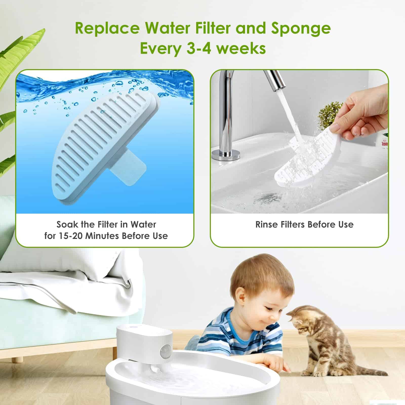 Paquete de 9 Filtros de Repuesto y Paquete de 18 Esponjas