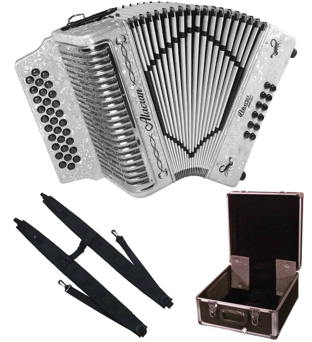 Paquete de Acordeón Alacran AL3112: Acordeón de -Blanco Perl
