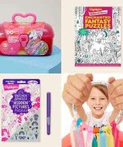 Lleno de diversión para niños mágicos, este paquete de actividades de unicornio destaca la creatividad y la imaginación de los pequeños. Incluye 2 libros de rompecabezas de temática de unicornio que desafían a los niños a encontrar más de 300 objetos ocultos en escenas encantadoras. El Kit de Manualidades de Actividad de Cintas y Unicornios ofrece a los amantes de los unicornios la oportunidad de crear manualidades únicas, como una varita de unicornio, un aro de cintas y un peine para el pelo. Además, los rompecabezas y manualidades fomentan la colaboración familiar y el juego sin pantalla, lo que garantiza horas de entretenimiento para los niños. Un regalo perfecto para fans de unicornios de todas las edades, el paquete de actividades de unicornio destaca la importancia de la creatividad y el aprendizaje a través del juego.