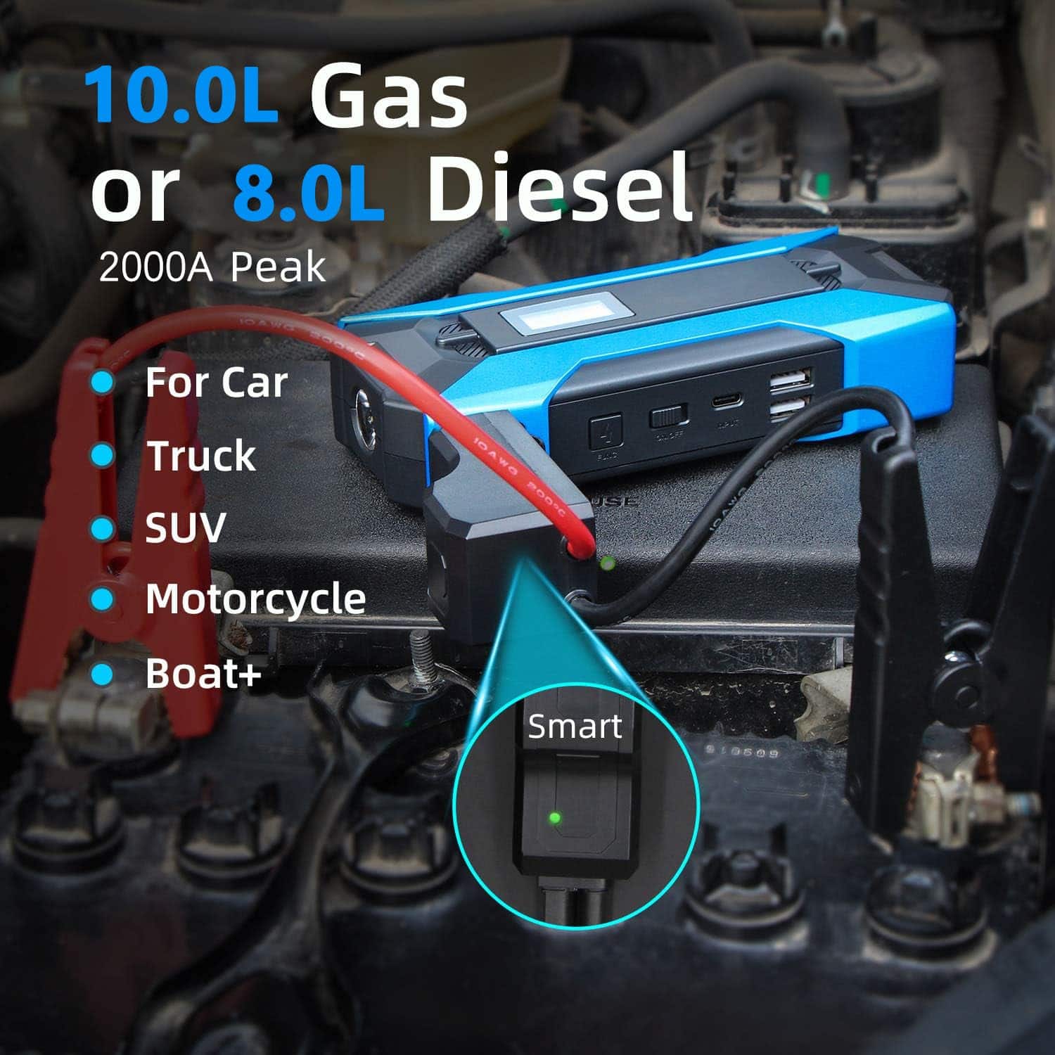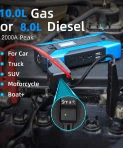 1. 1 Arranca baterías muertas – Arranca una batería muerta de manera segura en segundos con este compacto y potente paquete de arrancador de batería de coche de litio portátil de 2000 amperios – hasta 20 arranques en una sola carga – y clasificado para motores de gasolina de hasta 10.0 litros y motores diésel de hasta 8.0 litros.