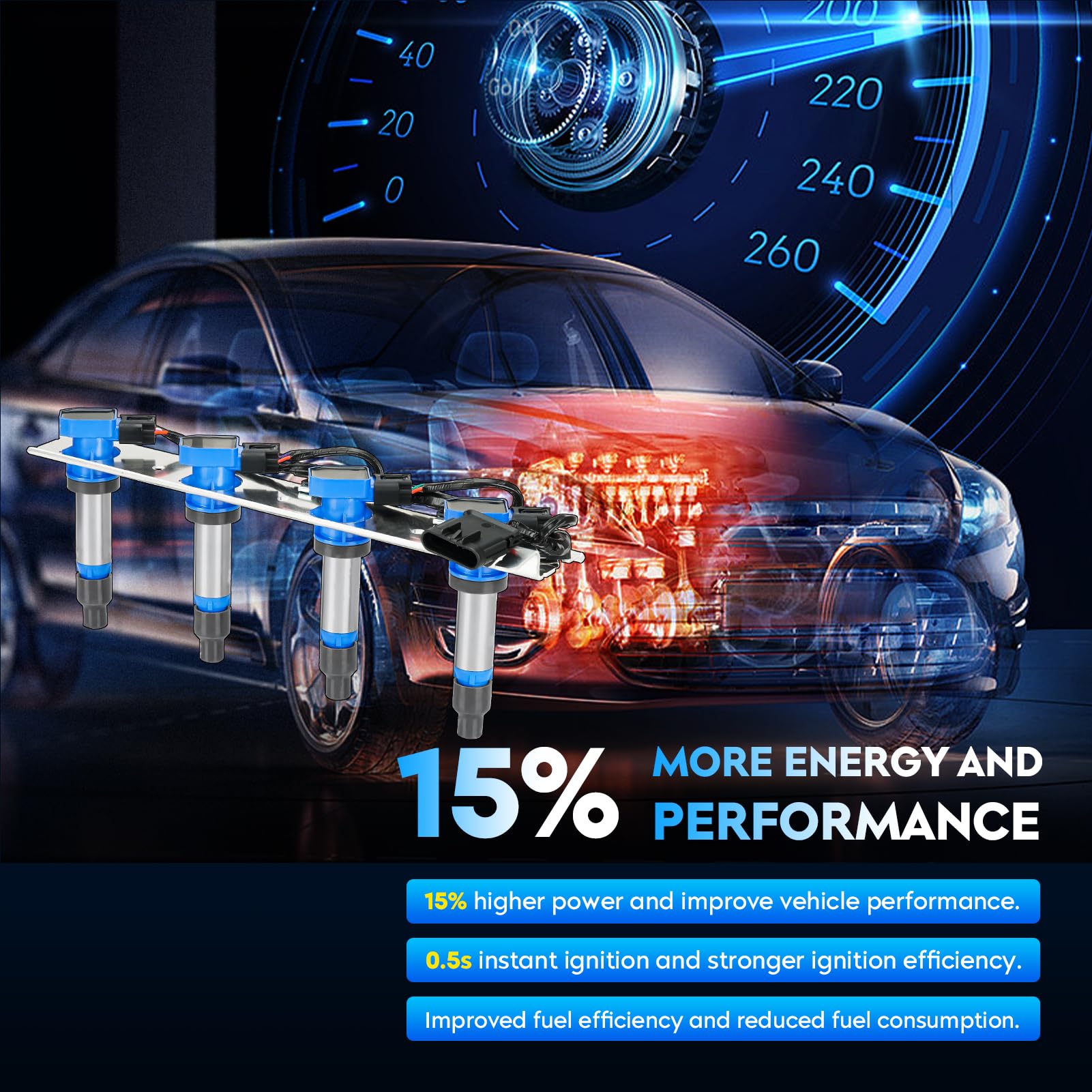 4. Calidad premium: La bobina de encendido está diseñada y mejorada de acuerdo con estrictos estándares, que pueden resolver problemas de temblores de automóviles, paradas, aumento del consumo de combustible, luz de falla del motor, etc. Mejora efectivamente el rendimiento del motor y te brinda una experiencia de conducción cómoda.