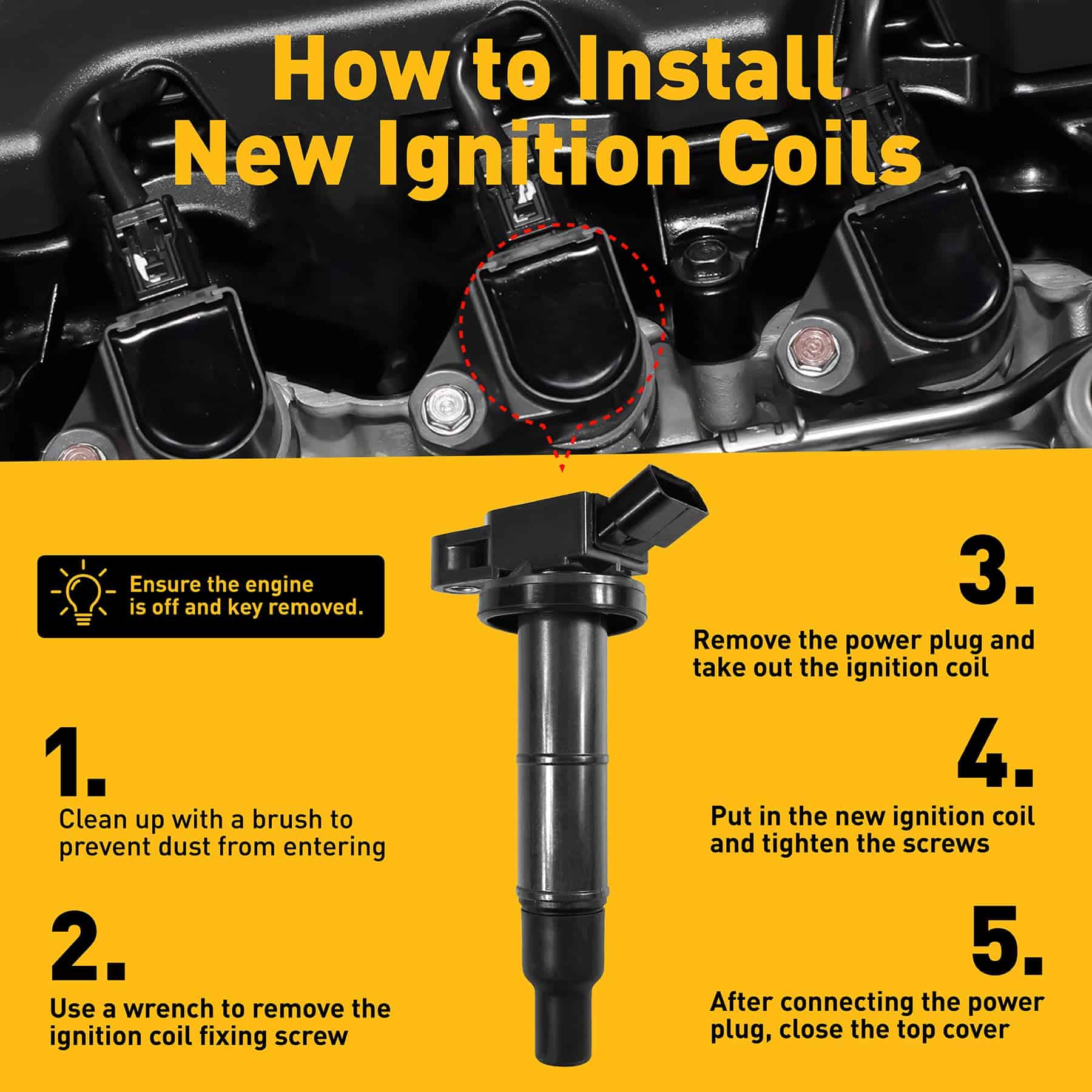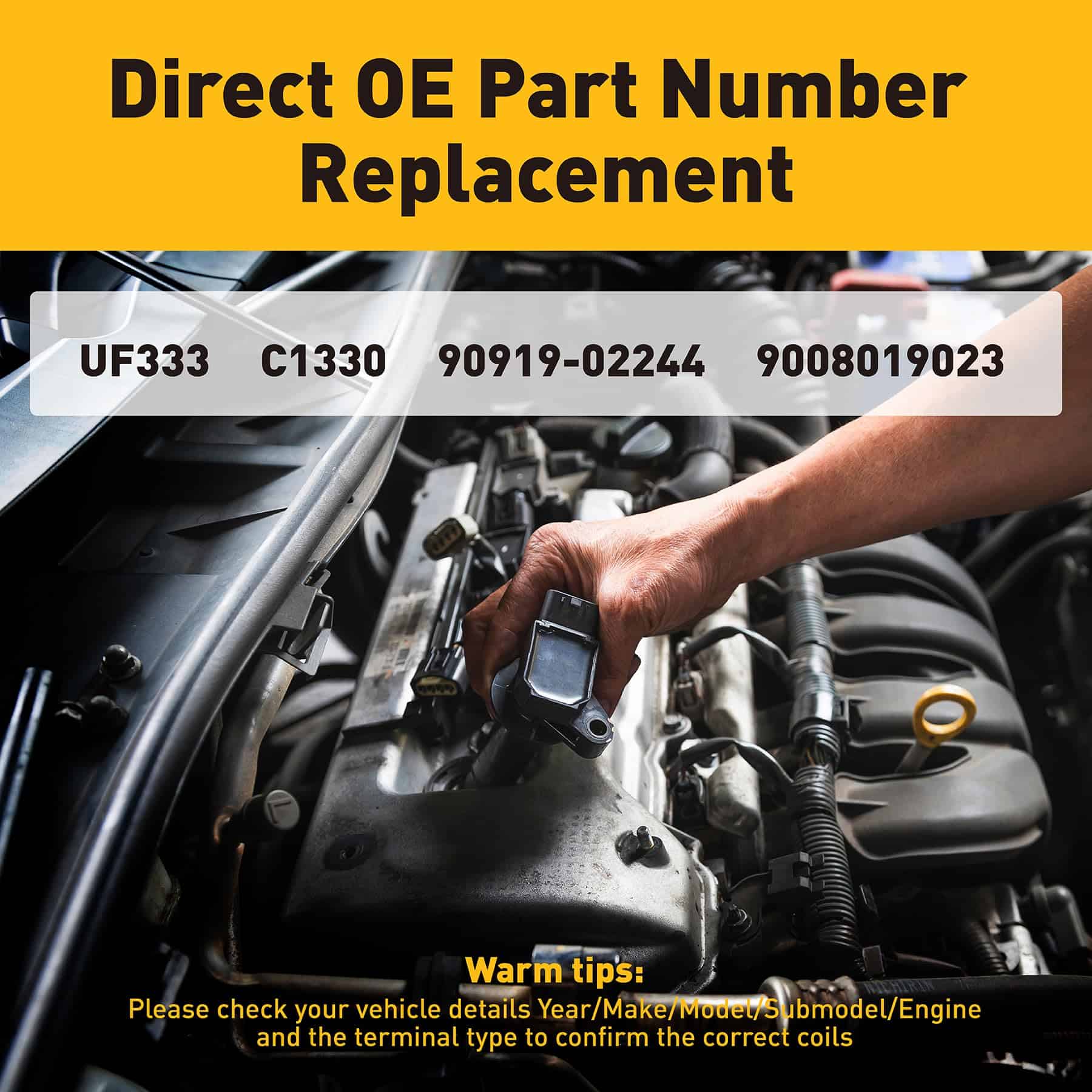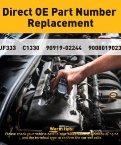 Este paquete de bobinas de encendido Plorx con bujías de iridio está diseñado para proporcionar un rendimiento óptimo y confiable en vehículos Toyota y Scion. Sustituye los números de OE UF333, C1330, 5C1299, y más para una instalación sencilla y una compatibilidad perfecta. El juego de 4 bobinas y bujías está fabricado para cumplir o superar las especificaciones OE, lo que garantiza una mayor fiabilidad y funcionamiento de alto rendimiento. Los problemas comunes con las bobinas de encendido de fábrica, como encendido difícil, fallo de encendido, tiempos de arranque largos y otros, se pueden solucionar fácilmente con este kit. Además, el producto cuenta con una garantía de 24 meses para brindarle tranquilidad en su compra. Obtenga este conjunto de bobinas de encendido y bujías para mejorar el rendimiento de su vehículo y mantenerlo funcionando en óptimas condiciones.