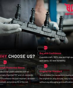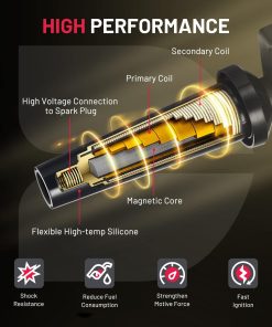 Las bobinas de encendido están fabricadas con material de acero de silicio, caucho importado de Japón y alambre barnizado importado de Alemania, lo que las hace duraderas y de alta calidad. Por otro lado, las bujías están fabricadas con electrodos de iridio y cerámica única para asegurar un encendido rápido y una aceleración potente.